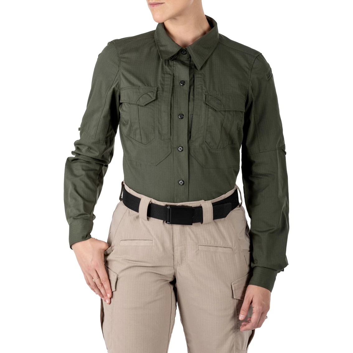 The 5.11 Women’s Stryke Shirt is purpose-built for women who are always ready. Constructed from rugged Flex-Tac mechanical stretch ripstop fabric with a Teflon finish to repel water, stains and soil, the Women’s Stryke Shirt is available in both long- and short-sleeve versions, tailored for the female physique. Style: 62404.