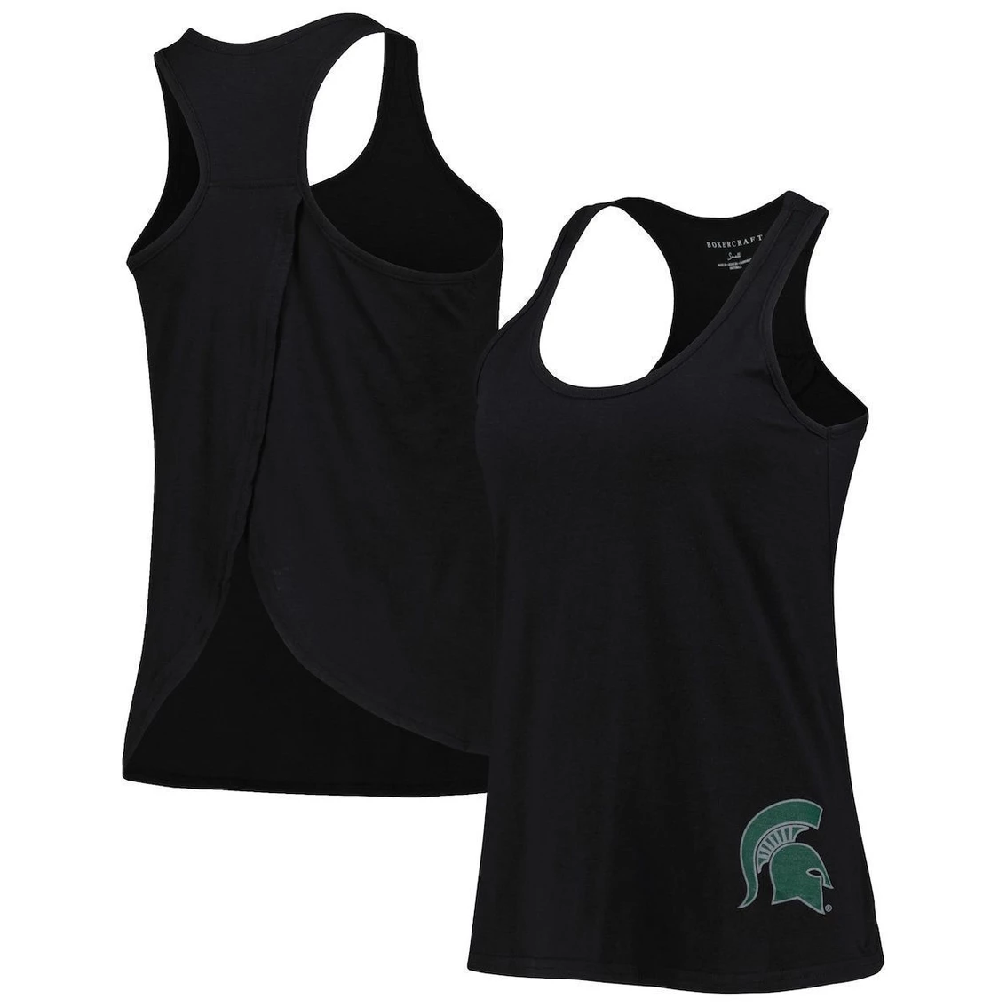 Deals βοΈ Boxercraft π© Women's Black Michigan State Spartans Charm 2.0 Scoop Neck Open Back Racerback Tank Top π