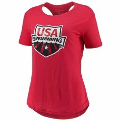 - Put your love for Team USA’s swimmers on display in style with this trendy Cut Out Back T-shirt. Featuring a distinct cut out, this tee offers a casual look with a bit of athletic flair. No one will be able to contend with your undying passion for the team when you illustrate your patriotic pride with this tee for every event.