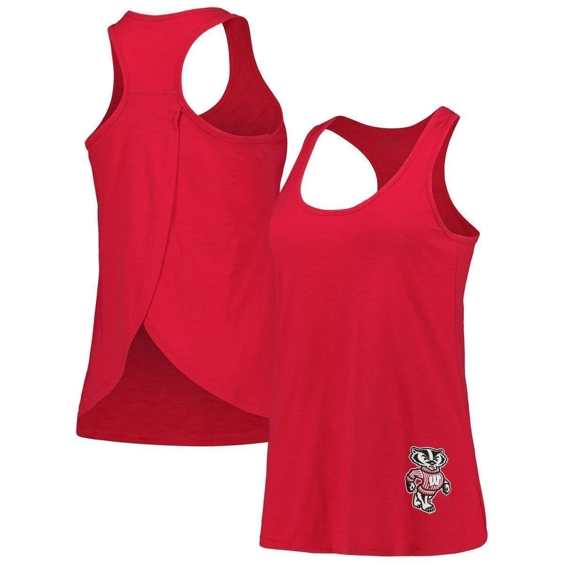 Budget β Boxercraft π© Women's Red Wisconsin Badgers Charm 2.0 Scoop Neck Open Back Racerback Tank Top π