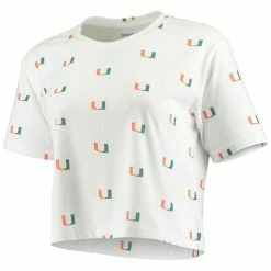 - Dress fashionably on Miami Hurricanes game day in this Cropped Allover Print T-shirt. The soft fabric features the Miami Hurricanes logo in a repeating pattern from front to back. Everyone will easily see your collegiate allegiance when you wear this chic top.