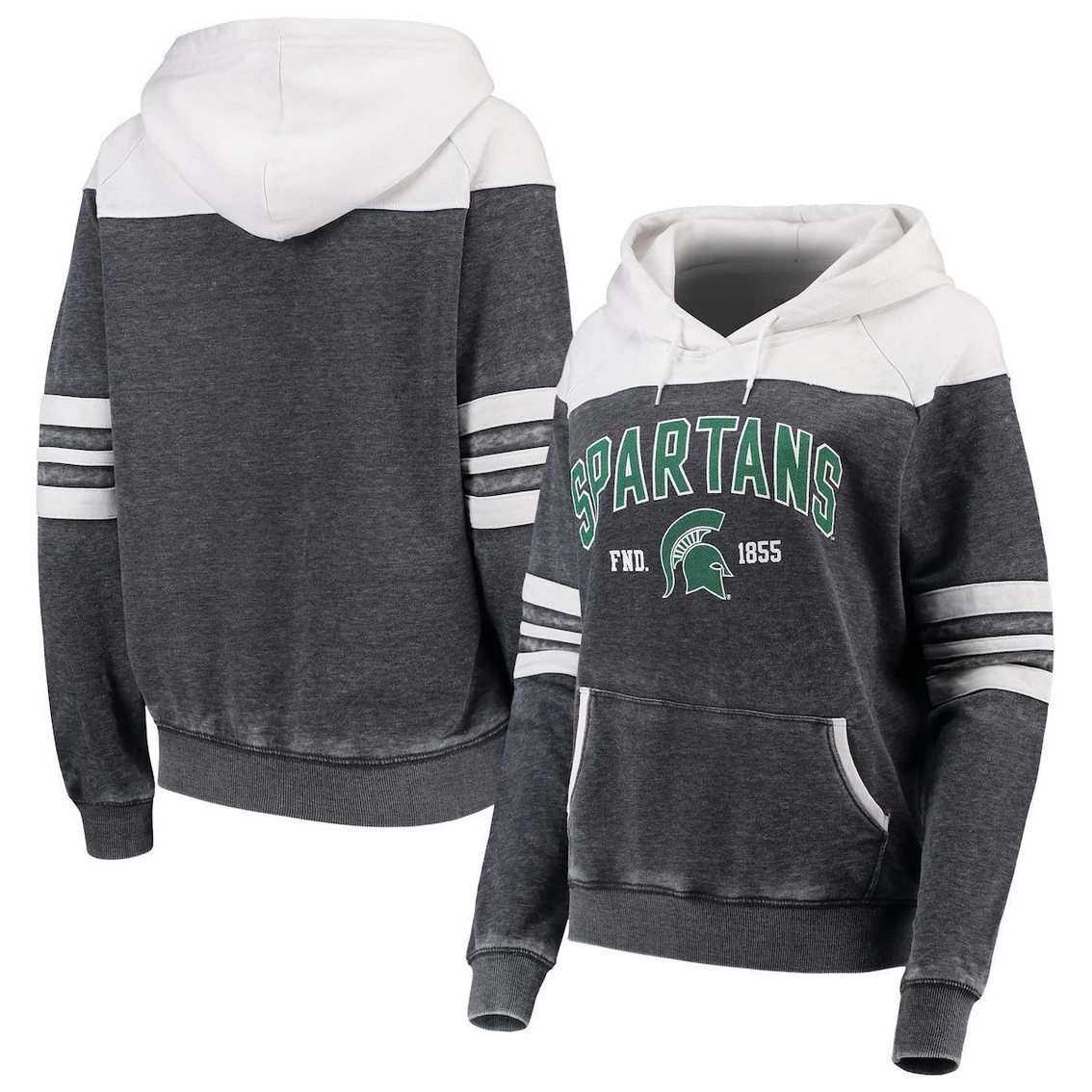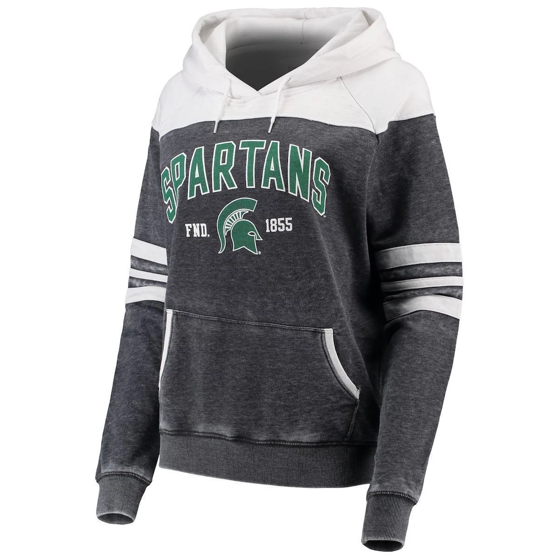 - Pick up this Michigan State Spartans Blitz Sleeve Striped Blocked raglan hoodie to prove that your team spirit never wavers, even in colder weather.