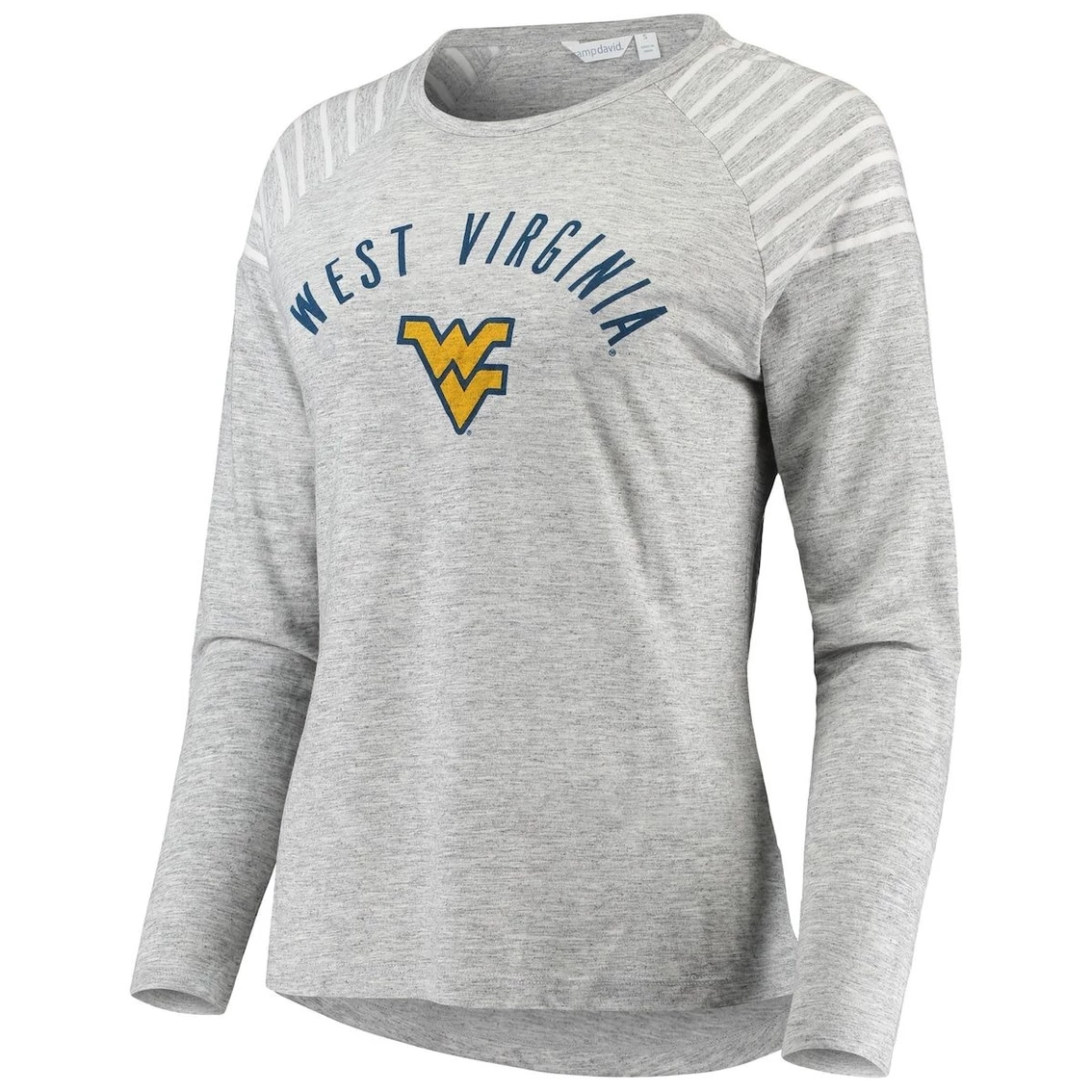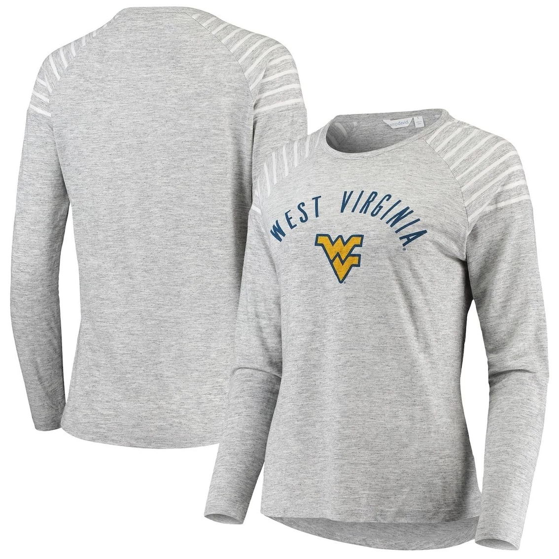 Discount β€οΈ Camp David π© Women's Heathered Gray/White West Virginia Mountaineers Maritime Striped Raglan Long Sleeve T-Shirt π₯