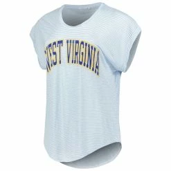 SKU: DSCO1154600435 Categories: T-Shirts, Tops, Women's Clothing Tags: Camp David, Clothing & Accessories, T-Shirts, Women's White/Light Blue West Virginia Mountaineers Day Trip Striped Scoop Neck T-Shirt
