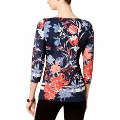 The unique cutout at the neckline of Charter Club’s petite printed top is detailed with silvertone grommets linked by a sleek, solid strap. Due to generous sizing, Charter Club suggests sizing down for the perfect fit. Style: A100004313P.