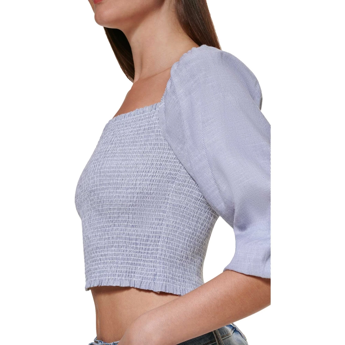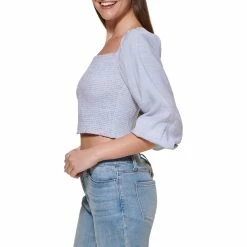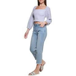Featuring a flattering off the shoulder neckline, this DKNY Jeans crop top features a stitch yoke detail for added flair.