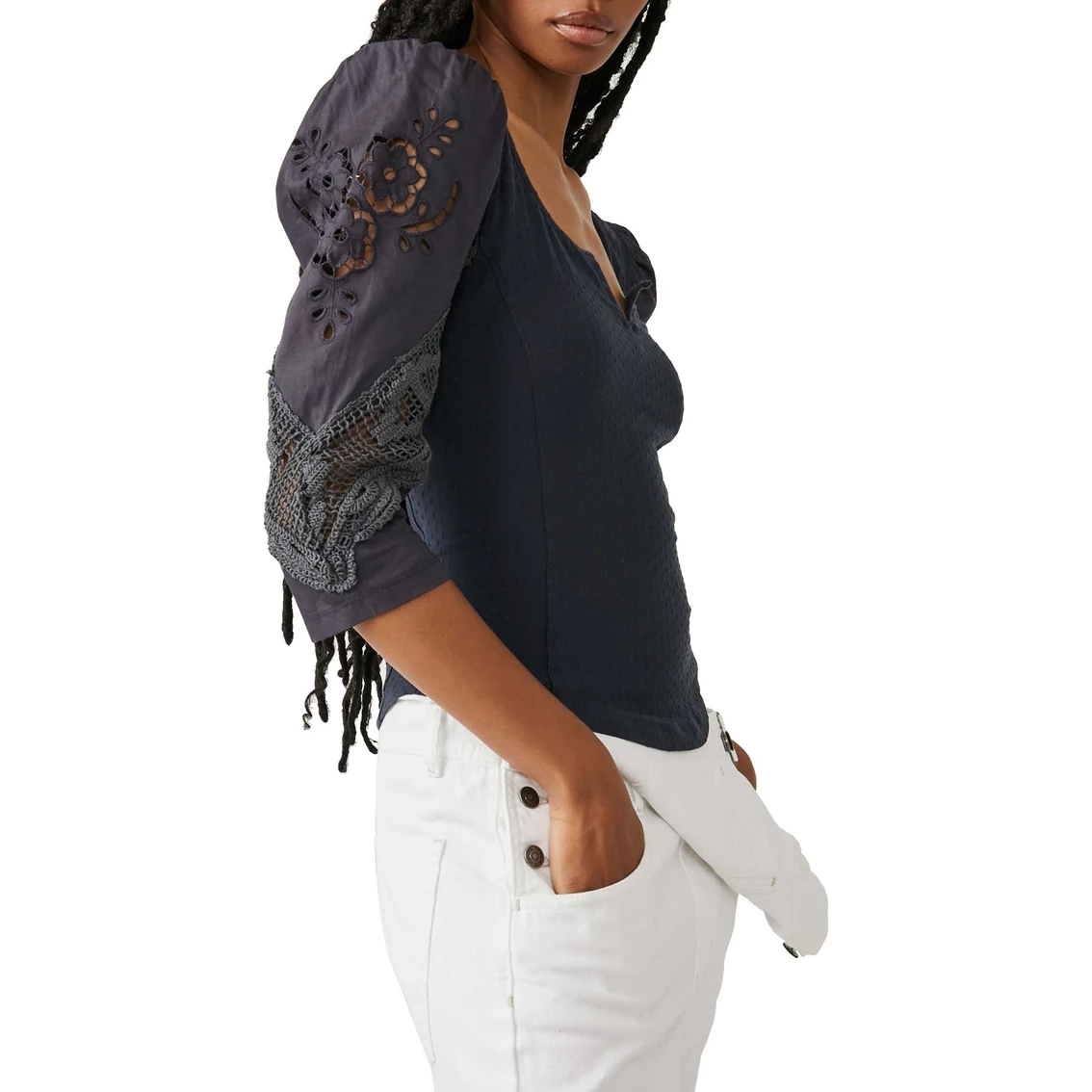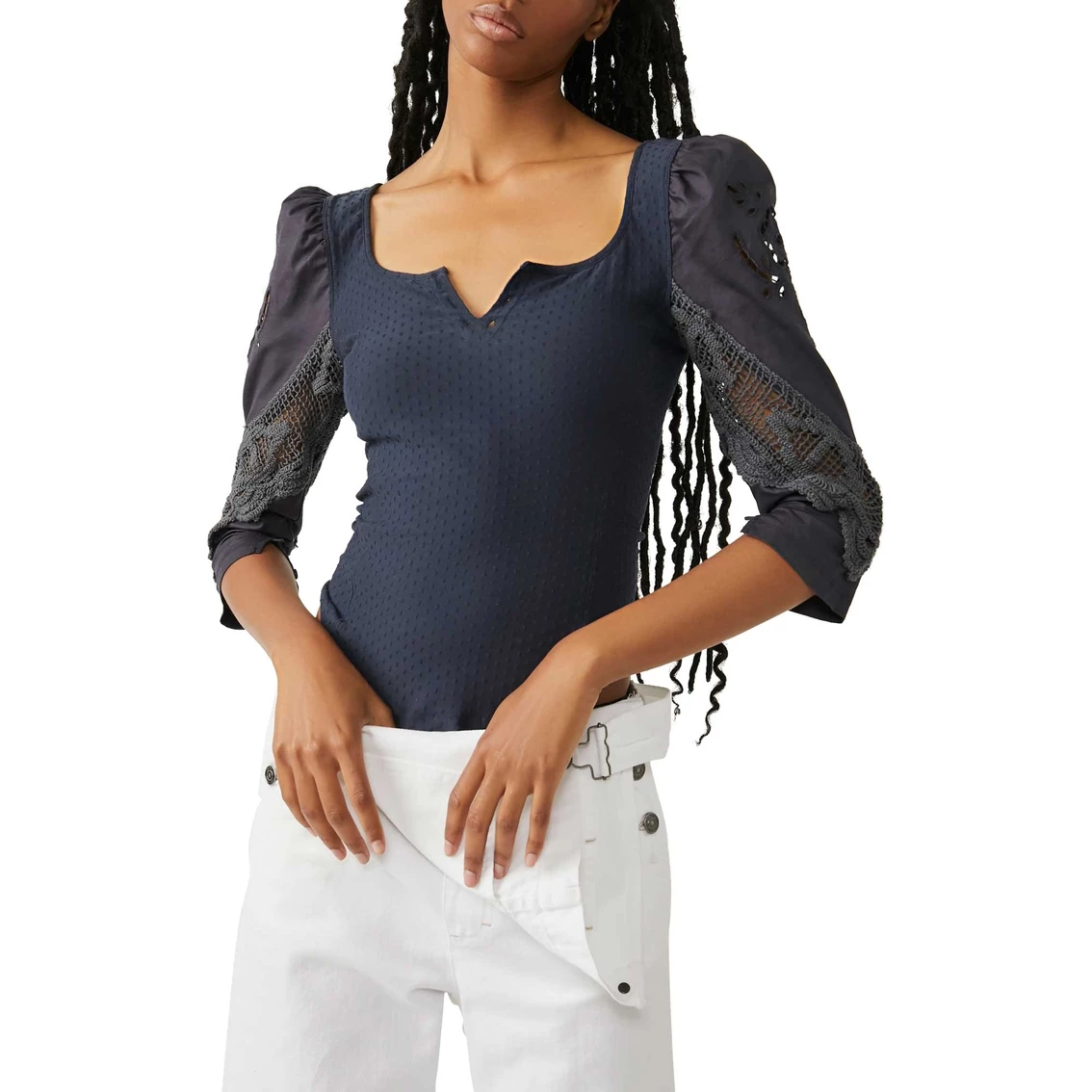 Just as effortless as it is essential, the Brunch Date Henley from Free People is a forever timeless henley. This stunning top features a staple, relaxed silhouette with textured detail at bodice, square notched neckline and lace-adorned long puffed sleeves for added dimension. Style: OB1237597020.