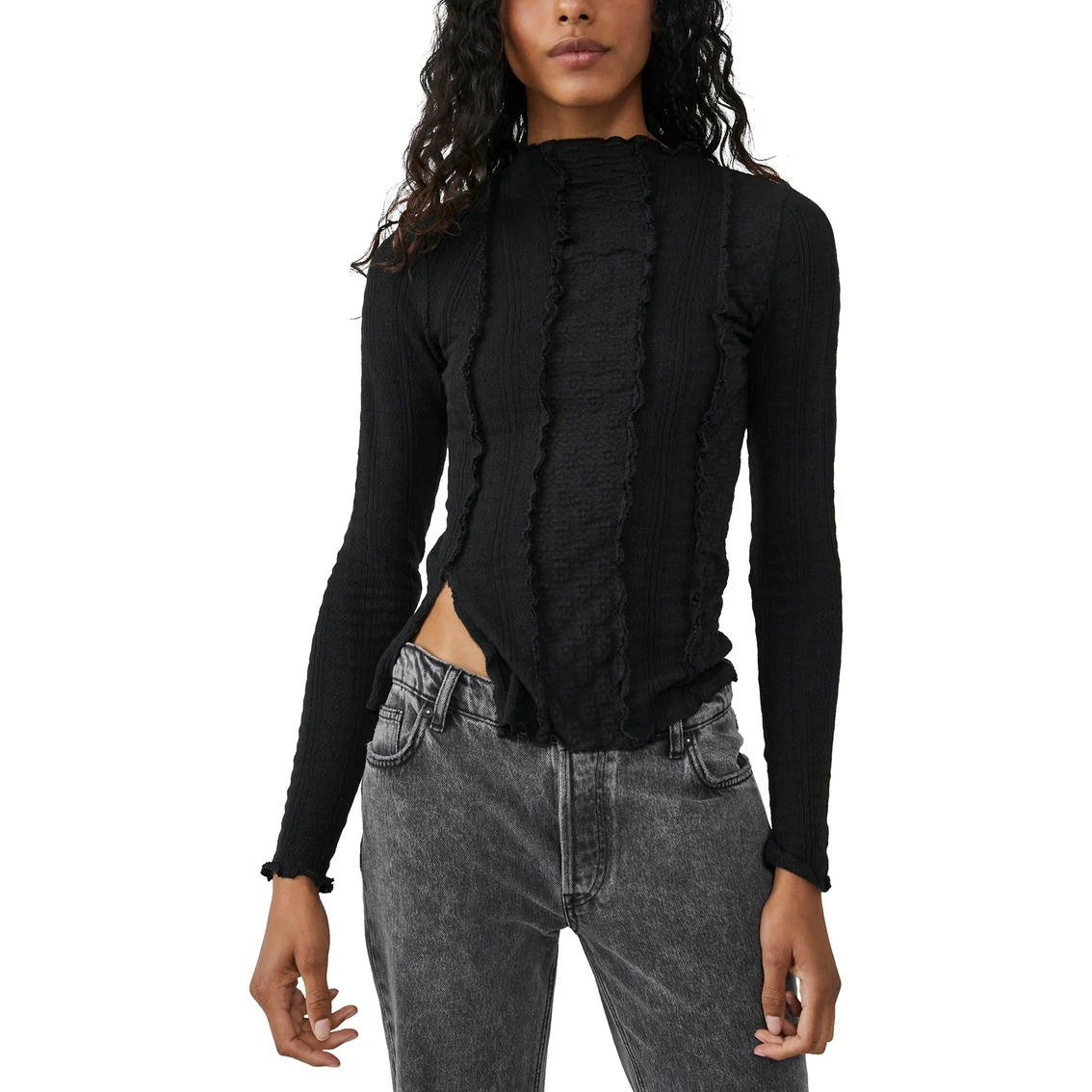 Add a timeless touch to any look with the Lula Top from Free People. This effortless top features a staple mock-neck silhouette with contrast knit detailing throughout and lettuce-style trim for added dimension. Style: OB1425236001.