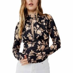 A comfortable and stylish women’s top from Free People. You’re going to love this printed mock neck top with open key hole front and button back detail. Dress up or down, perfect for work or a casual cool night out. Sure to become a comfy, fashion favorite.
