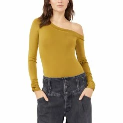 From Free People, this long-sleeve bodysuit will have everyone saying, “That’s hot!” It features an off-the-shoulder silhouette with a thong bottom. Layer it or wear it alone with your favorite bottoms. Style: OB1447006.