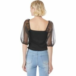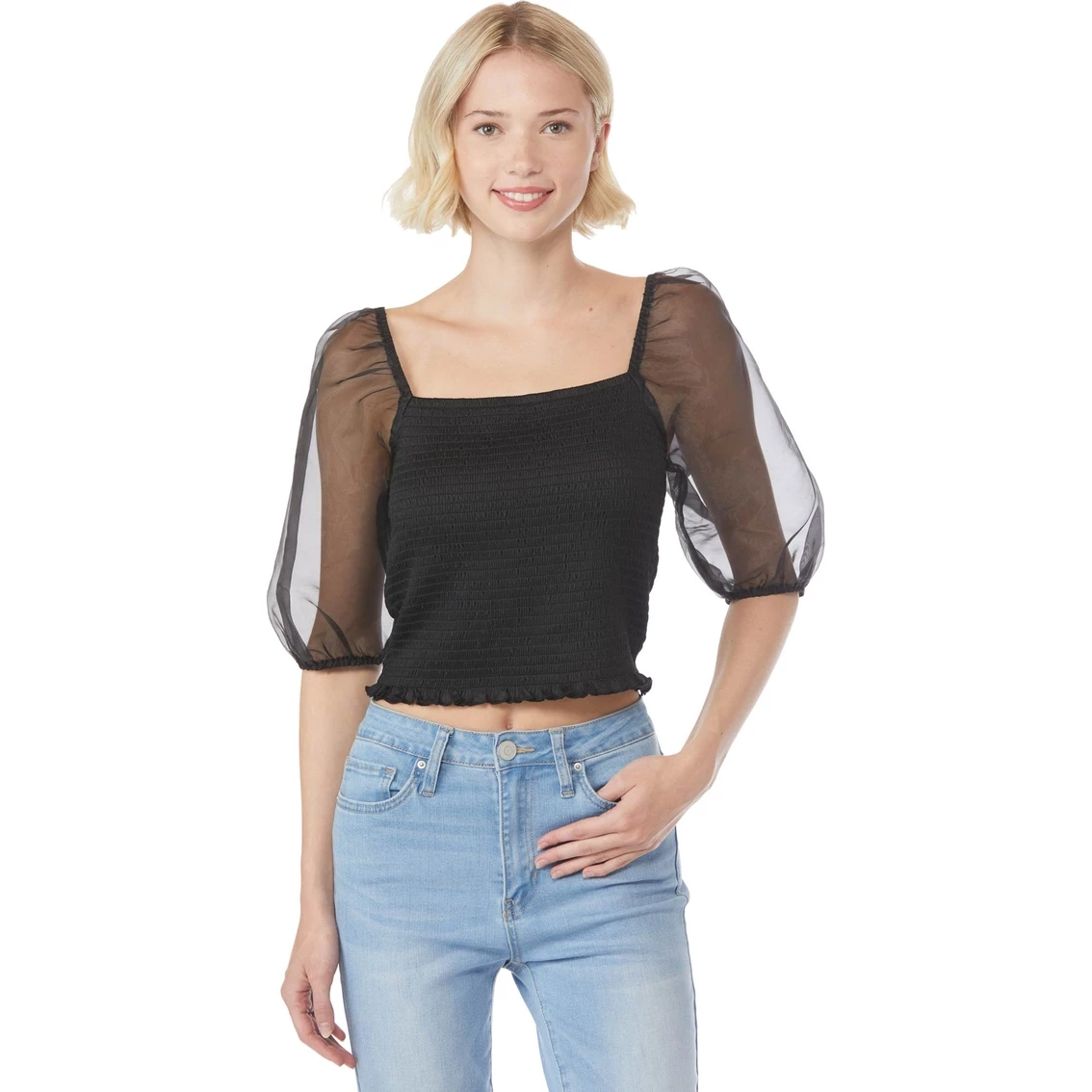 This Inspired Hearts Juniors Square Neck Top is perfect for the season. The puff sheer short sleeve top has a square neck. Allover smocking lends a fun and stylish texture. Style: 2BNHK692BLK.