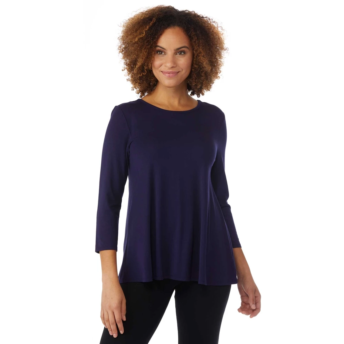 Designed exclusively for the Exchange, JW offers quality designs for great prices. Featuring 3/4 sleeves and a babydoll silhouette, this knit top is the perfect basic to add to your wardrobe. It features stretch fabric for comfort, and is specifically made from rayon and spandex jersey fabric. Machine washable. Imported. Style: JF7049H22.