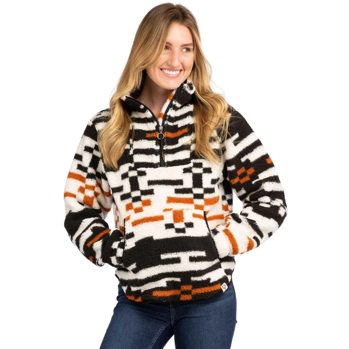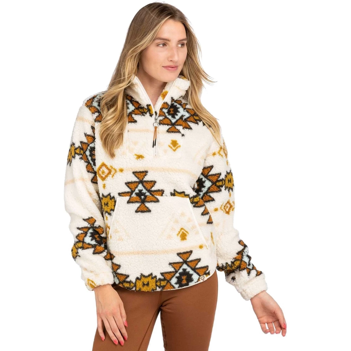 This Wiley Pile Sherpa Pullover has a kangeroo pocket, is hip length and soft and warm.