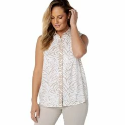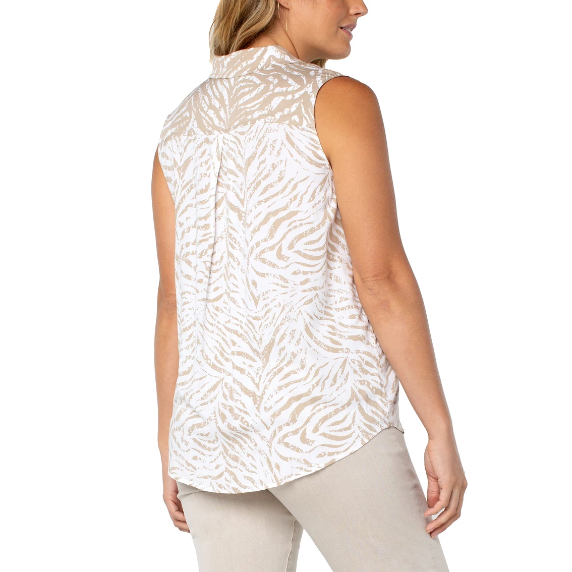 This Button Up Shirt is Liverpool’s patched button front knit top featuring a beautiful tiger striped print. This top can easily be dressed up. Make a statement on its own and pair back to denim for an effortless look! Style: LM8674EZP71261.