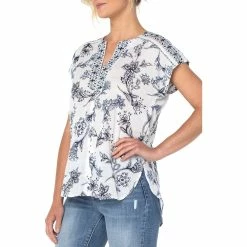 This easy dolman shirt from Liverpool features a beautiful batik floral print. Featuring a mandarin collar and a high-low hem, this top is the perfect go-to for the season. Pair it with your favorite bottoms for an easy, chic look. Style: LM8688Y19P61.