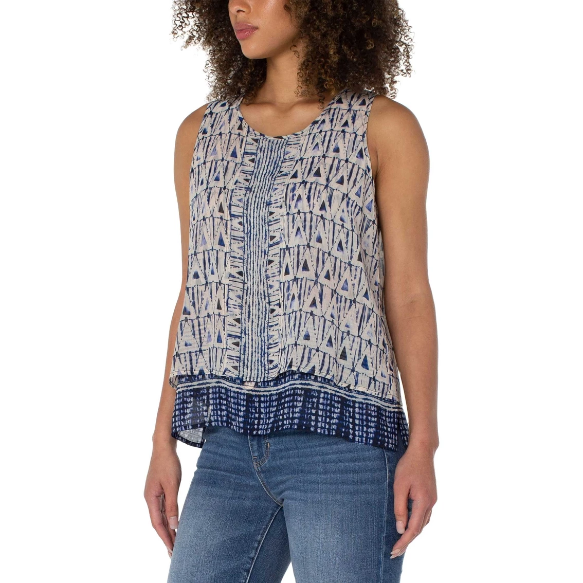 Make a statement in this beautiful Grecian Tile print sleeveless top from Liverpool. This shirt offers a sleek and sophisticated look. It’s perfect for brunch or special occasions. Pairs beautifully with denim or trousers. Style: LM8713PCP65960.