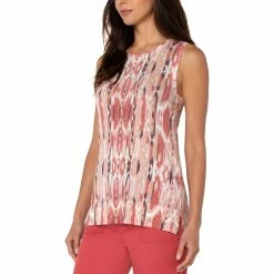 This statement sleeveless sweater from Liverpool is super versatile and easy to wear. This fabulous Ikat print is the perfect piece to mix and match with your wardrobe! Top features round neck and side slits. Style: LM8418SW5P46.