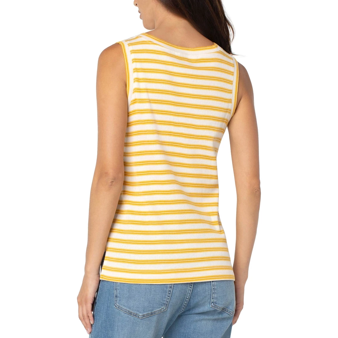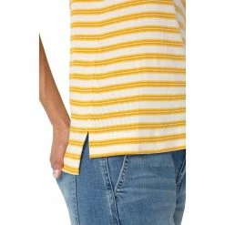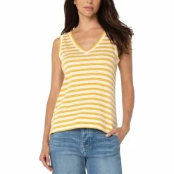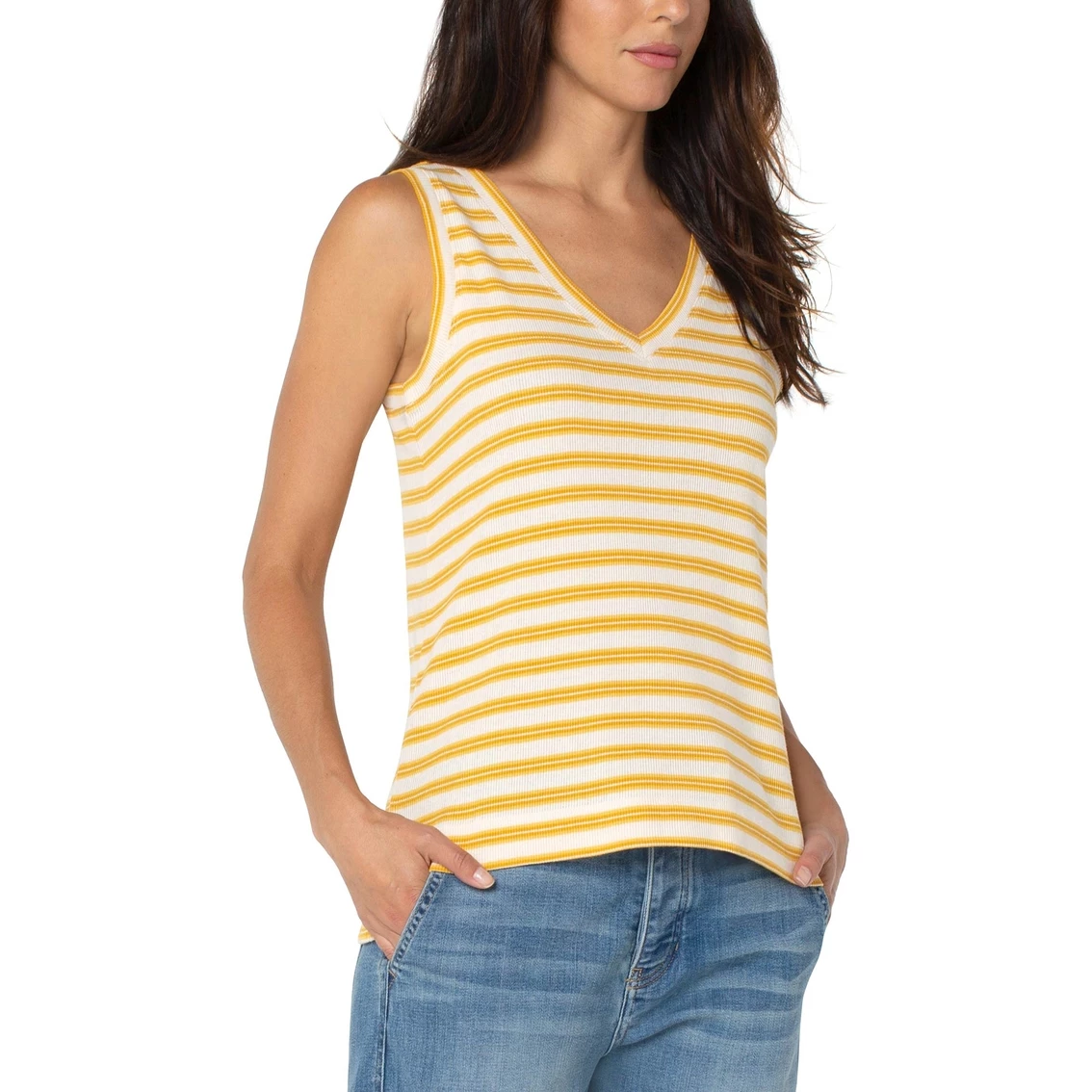 This sleeveless V-neck knit top from Liverpool is super soft, comfortable and chic! Its yellow multi-stripe design is a sure way to add a bit of flair effortlessly. Style: LM8382KU57.