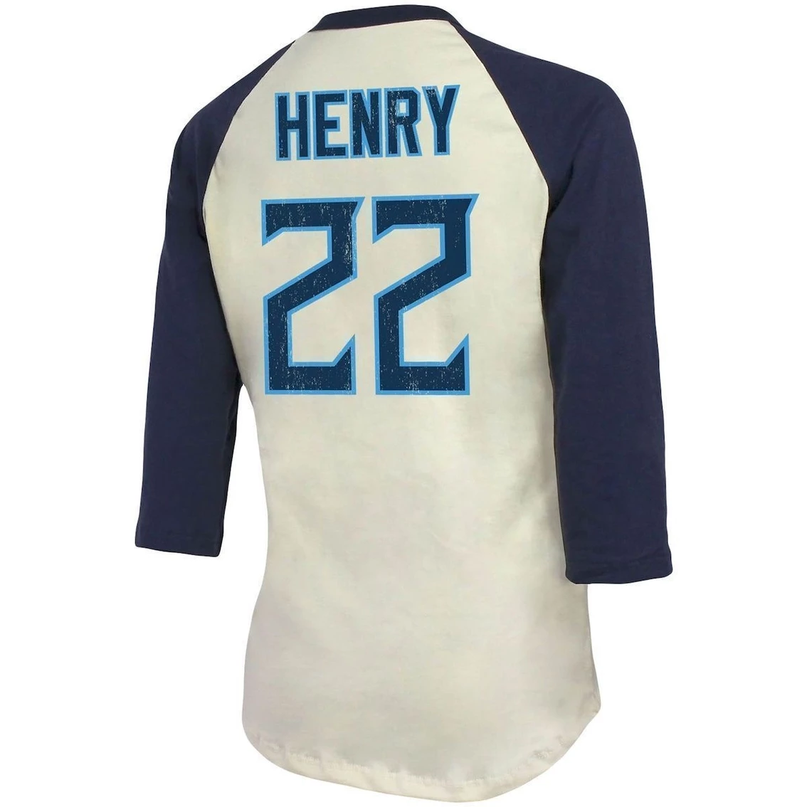 Buy β Majestic Threads π© Women's Fanatics Branded Derrick Henry Cream/Navy Tennessee Titans Player Raglan Name & Number 3/4-Sleeve T-Shirt π₯