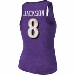 - When you want to go all out and show off just how much you love the Baltimore Ravens, what do you do? You grab this Lamar Jackson Player Name and Number tri-blend tank top from Majestic Threads of course! It features stunning distressed Baltimore Ravens graphics on the front and back.