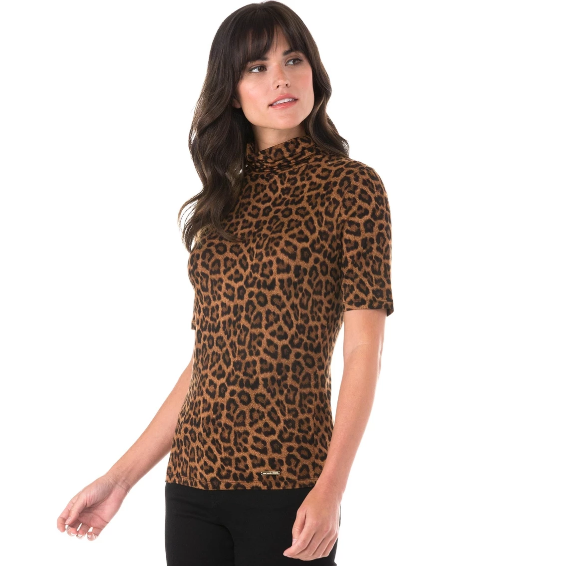 Channel the season’s chic aesthetic with this short-sleeve leopard print top from Michael Kors. Close fitting with a comfortable stretch, it’s the perfect night-out piece when paired with skinny jeans and cone-heel pumps. Style: MB95F798H.