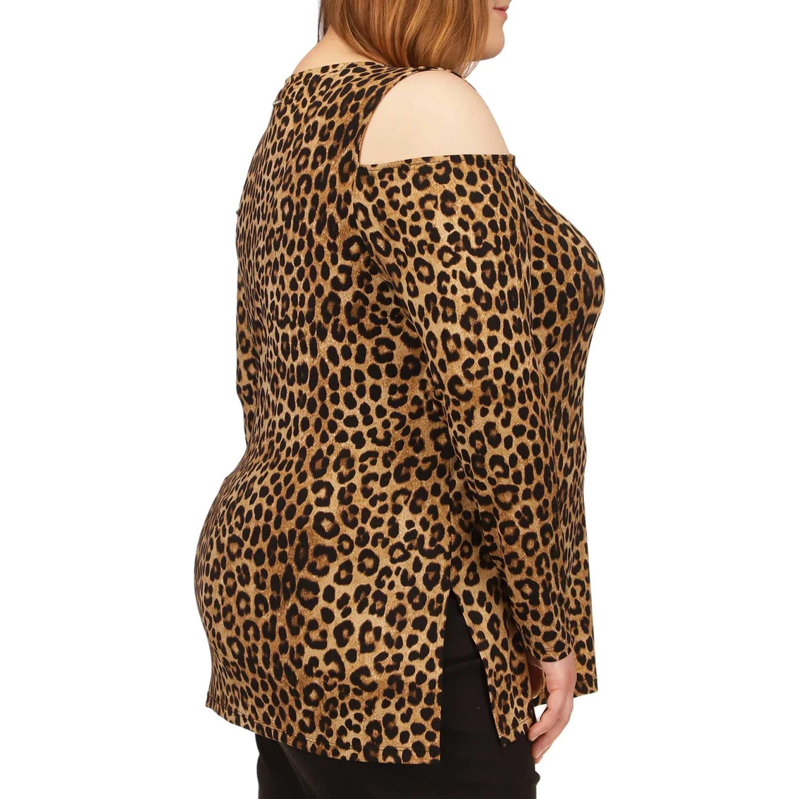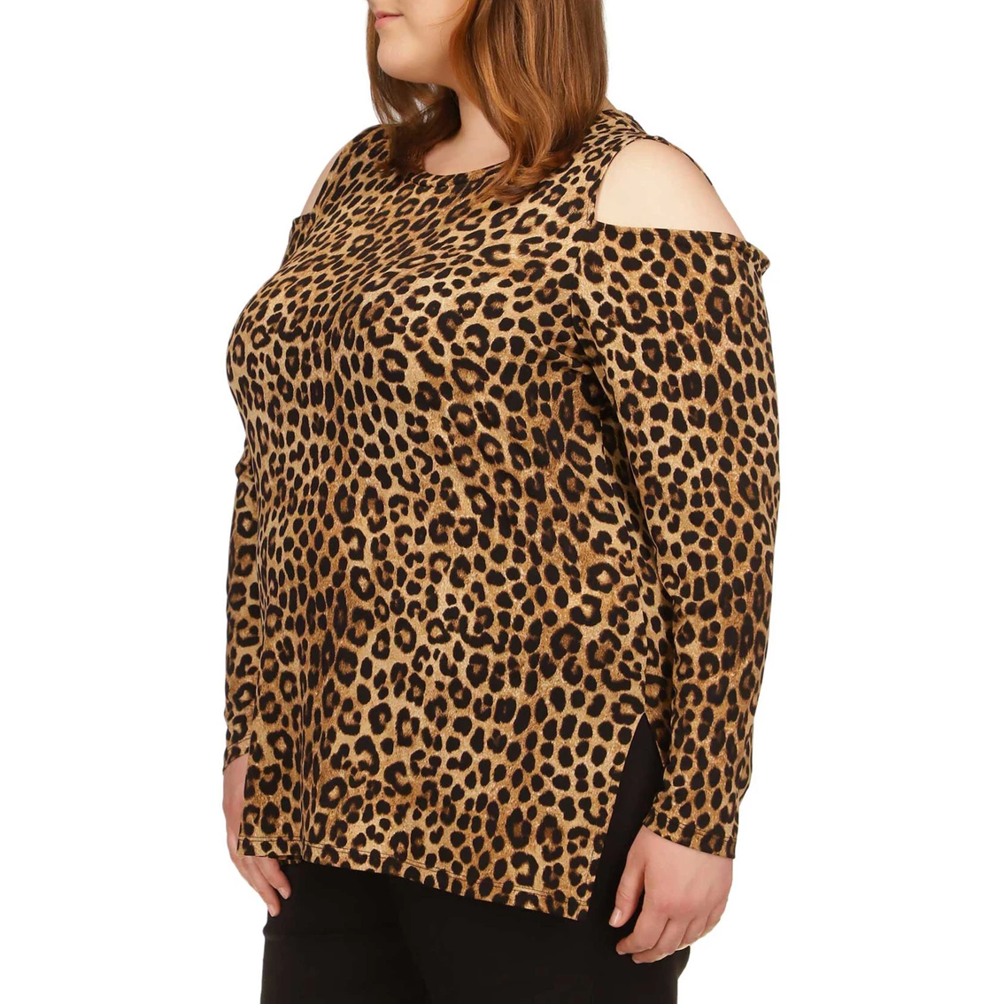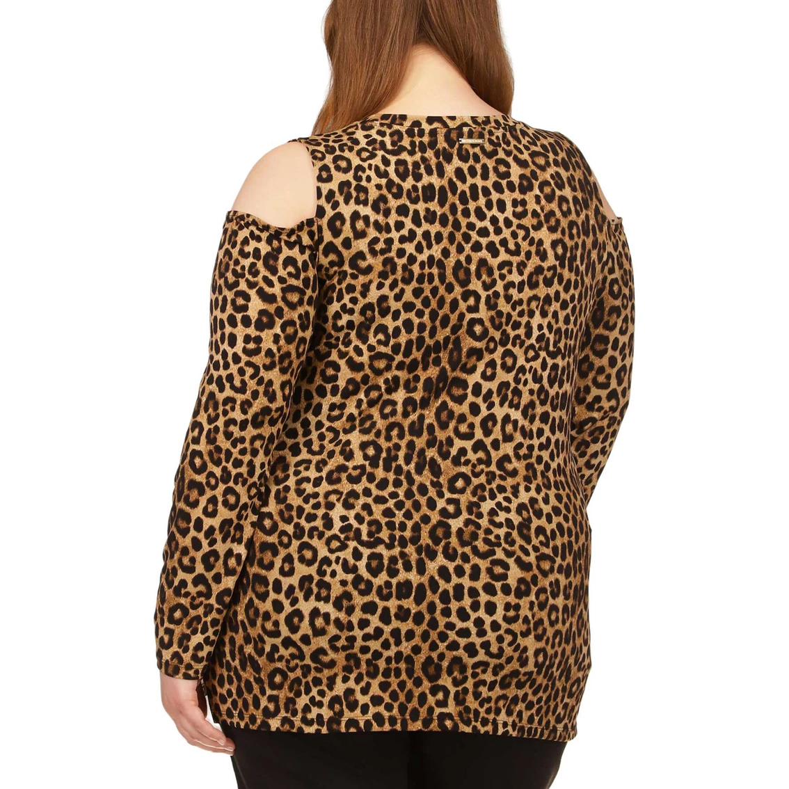 A shoulder cutout is highlighted in this long-sleeve plus size cheetah print top from Michael Kors.