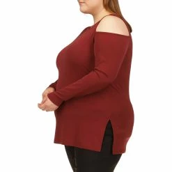 A shoulder cutout is highlighted in this long-sleeve plus size top from Michael Kors.