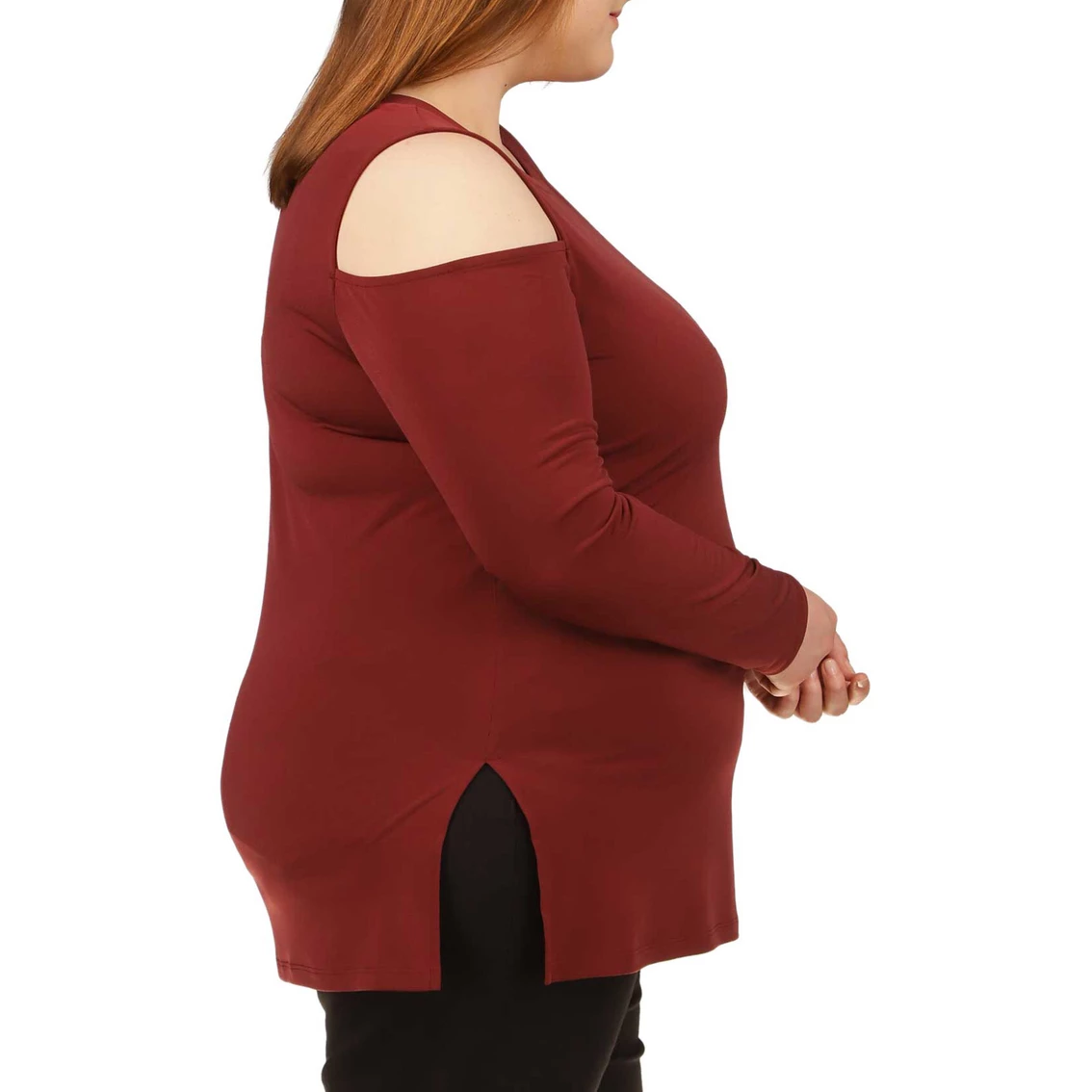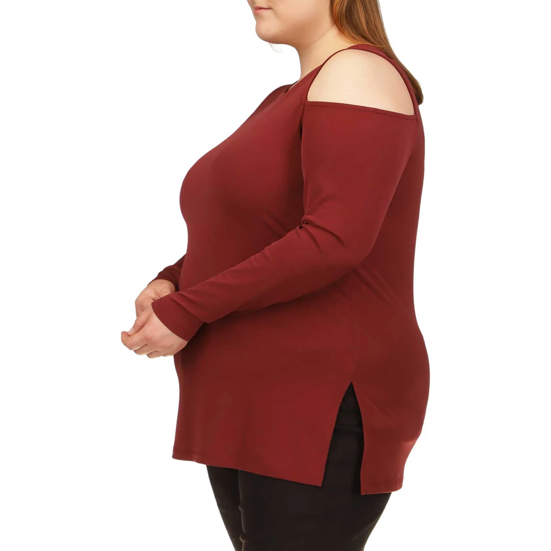 – Long sleeves with cold shoulder cutouts