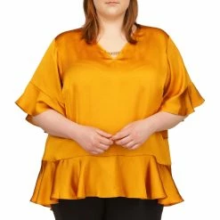 The chain neckline detail shines with flutter sleeves on this Michael Kors plus size top. This 3/4 sleeve top is ideal for dressy occasions.