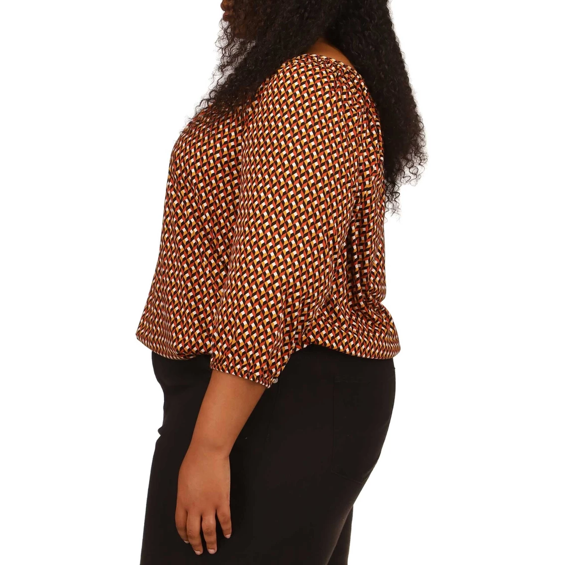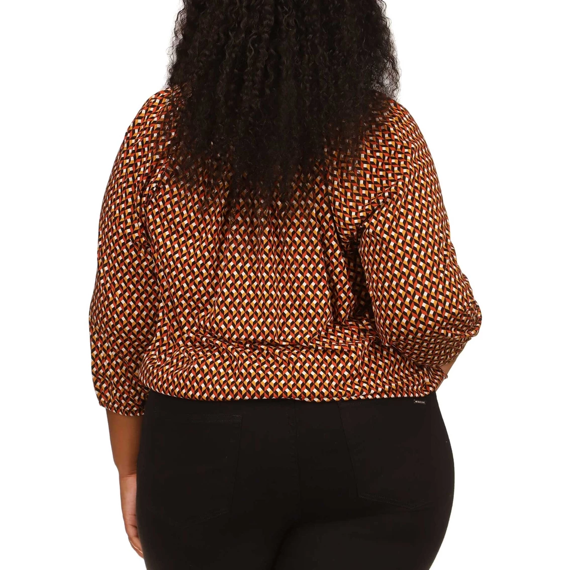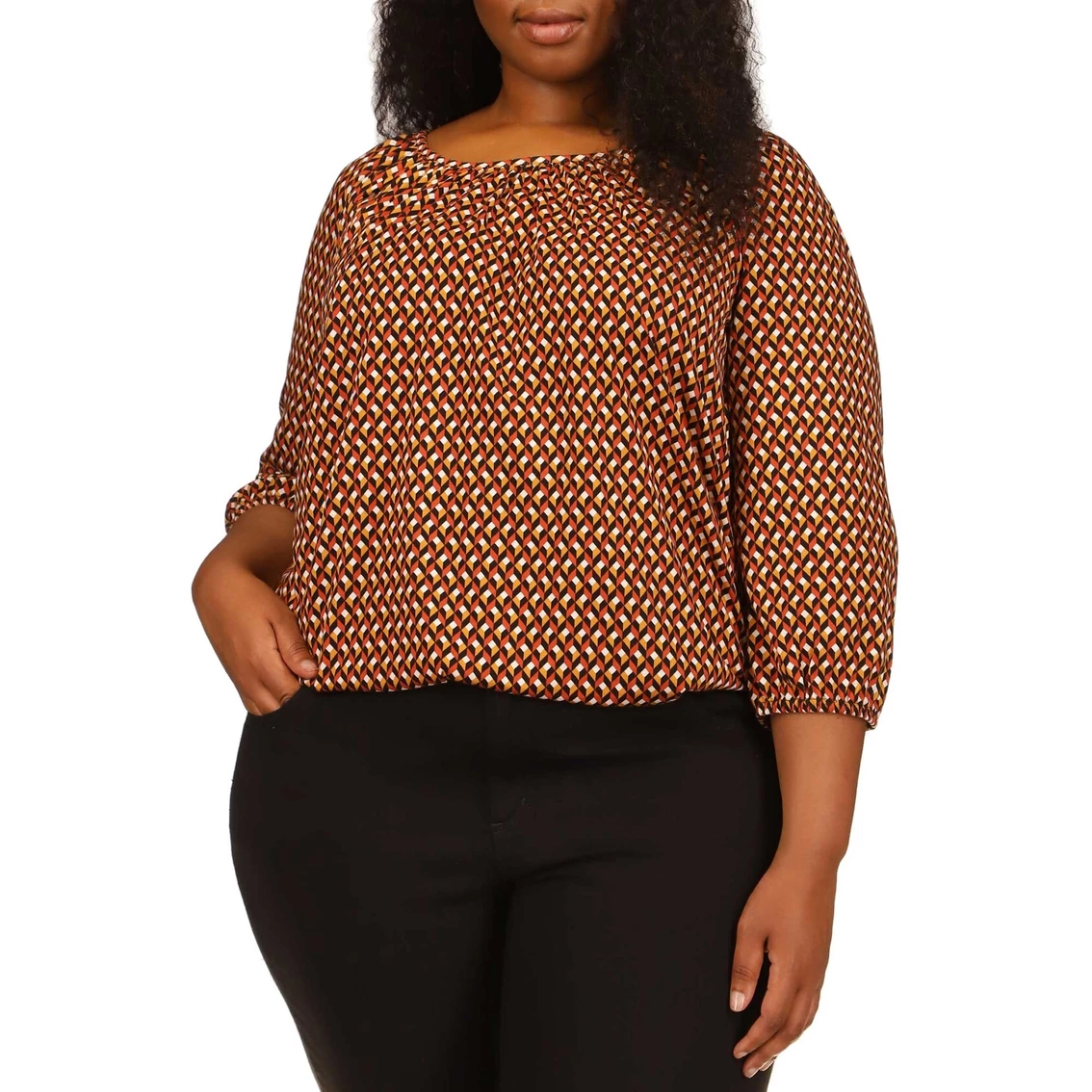 An energetic geo print enlivens this easy-wear peasant top from Michael Kors. The Michael Kors Plus Size Geo Easy Peasant Top features three-quarter sleeves. Pair with your favorite jeans or a sassy skirt to complete this on trend look. Style: WF254237HK794.