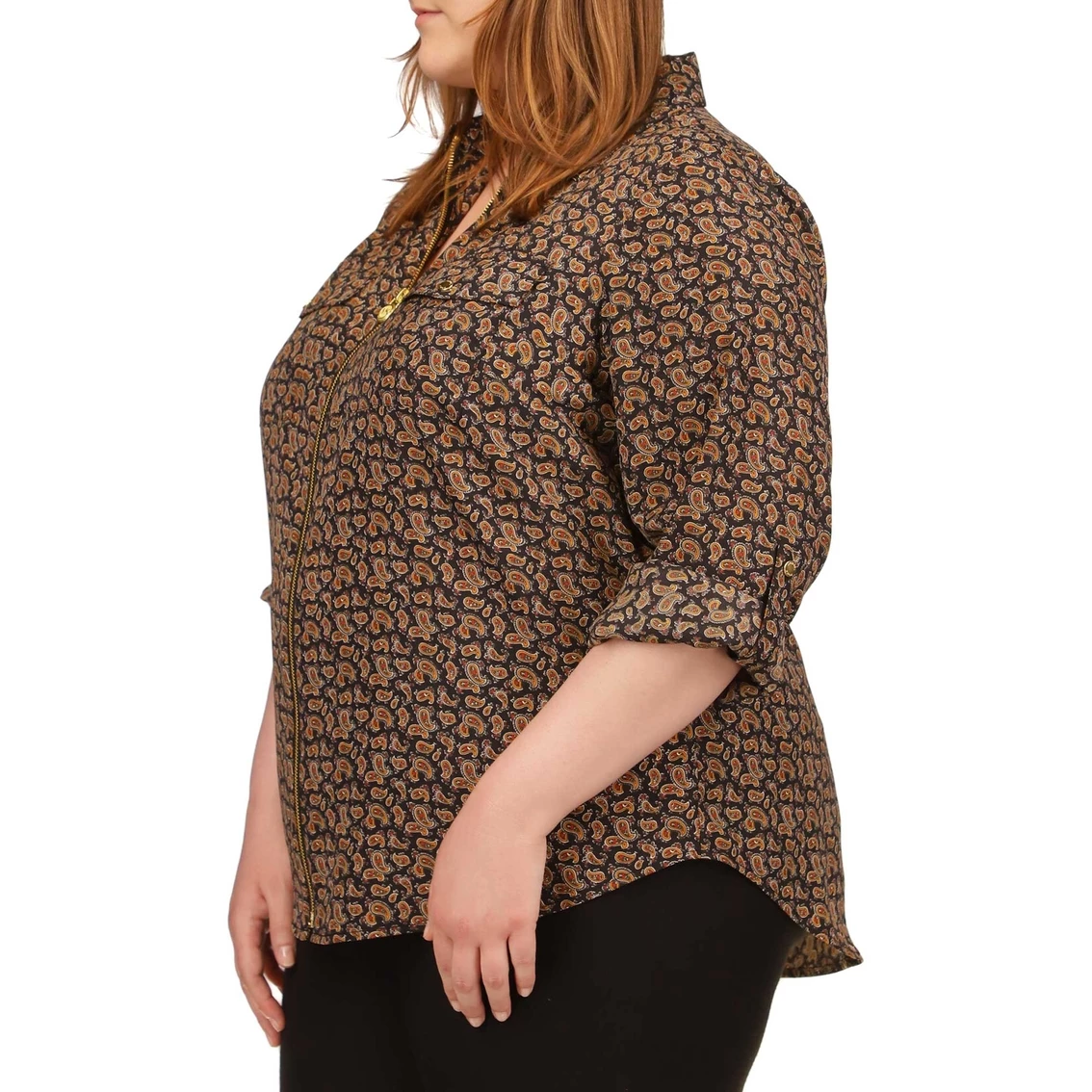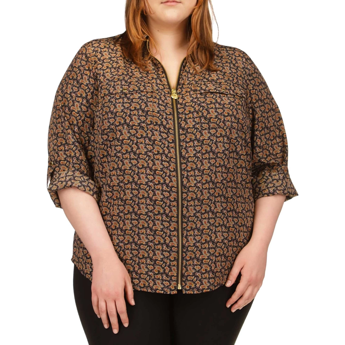 Embellished with a collar and full-zip front, this shirt from Michael Kors is covered in a paisley print. This cute shirt can be worn on and off the clock.