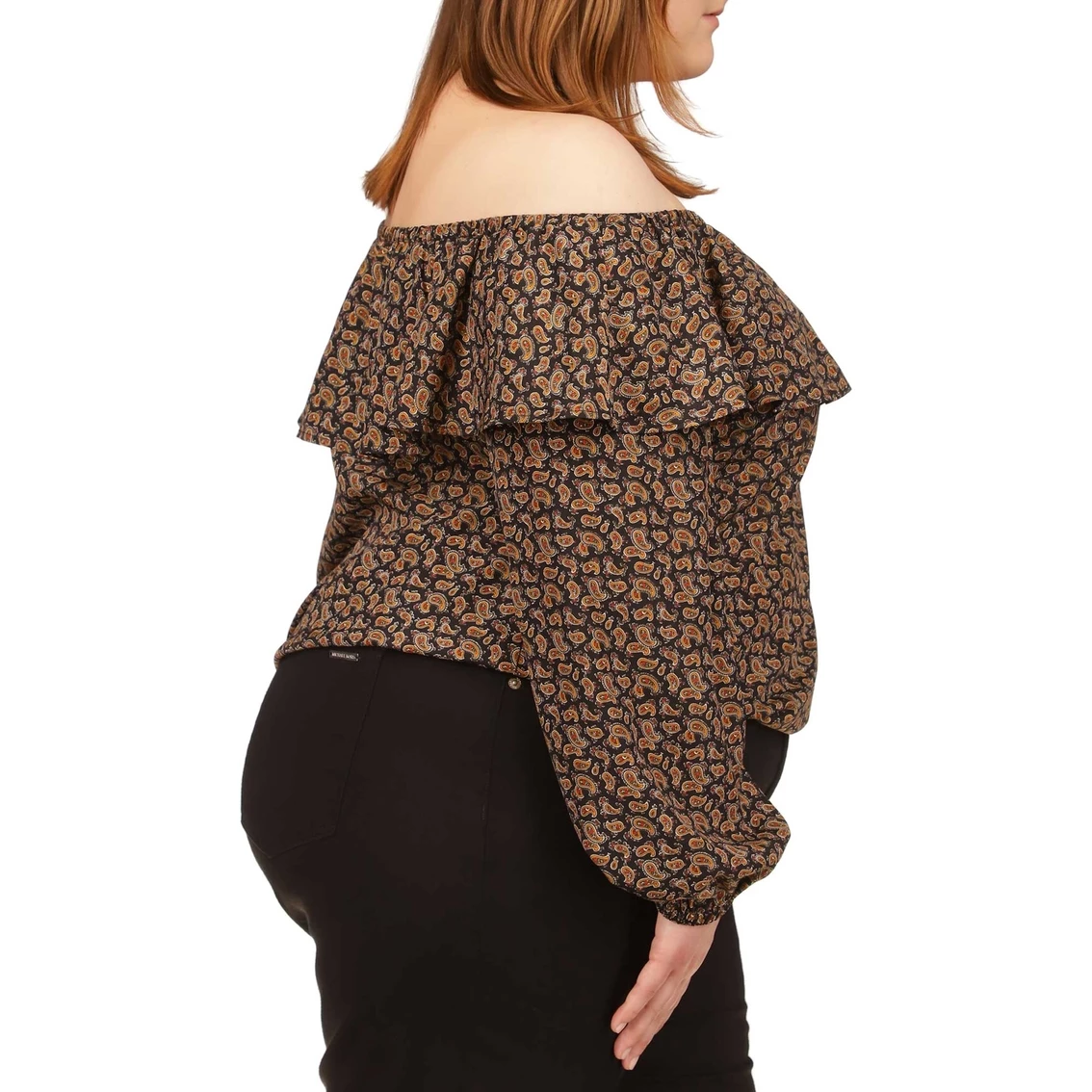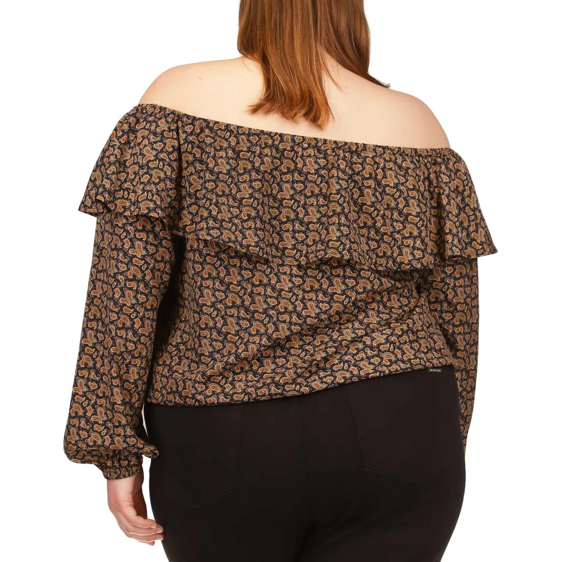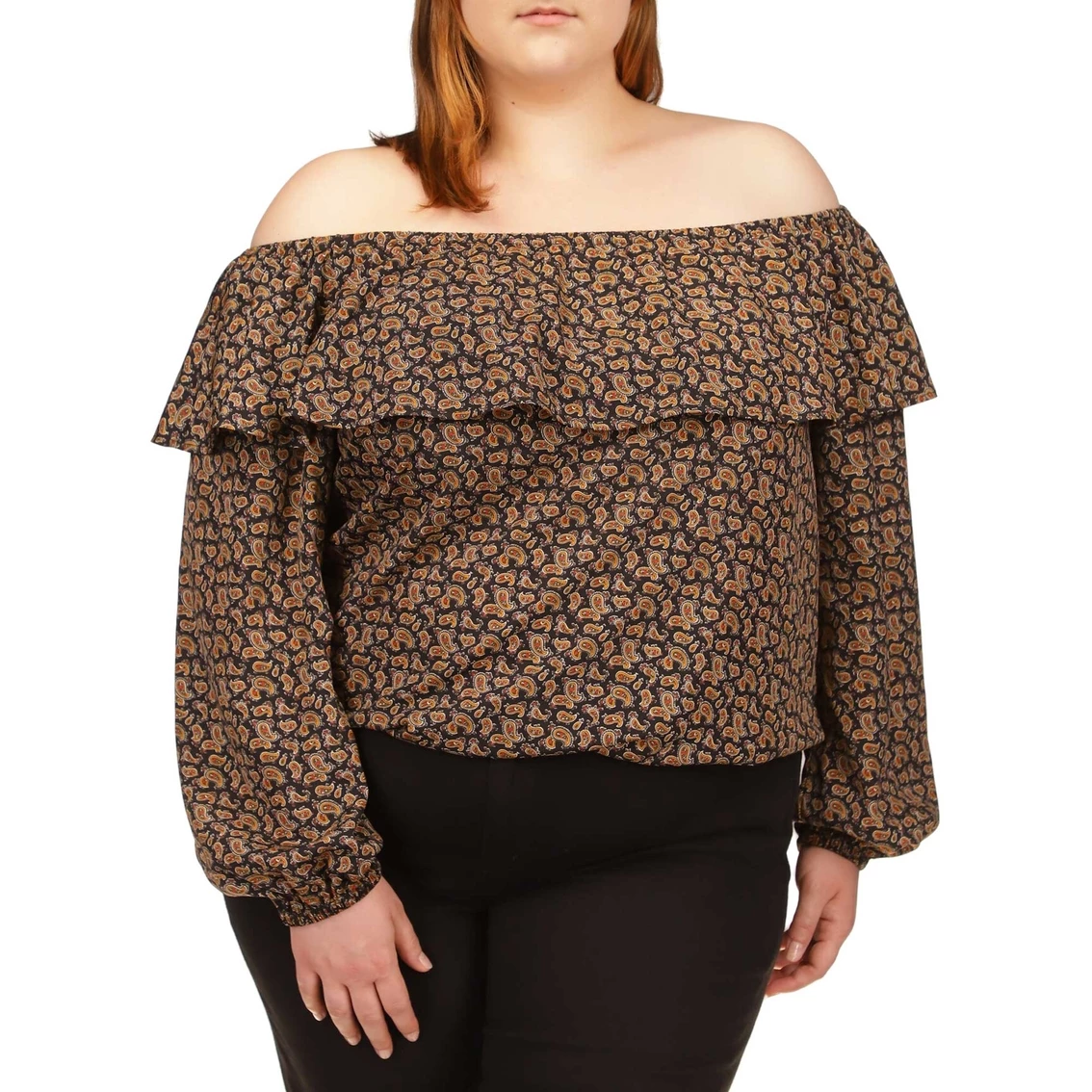 Experience the warmth this season with the Michael Kors Plus Size Paisley Off Shoulder Top, featuring crinkle woven fabric and off-the-shoulder neckline. Polyester material means the shirt won’t weigh you down.