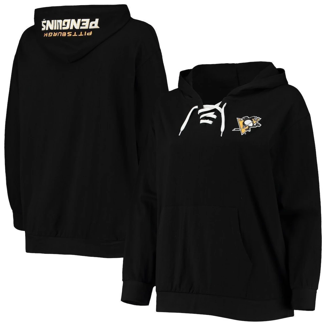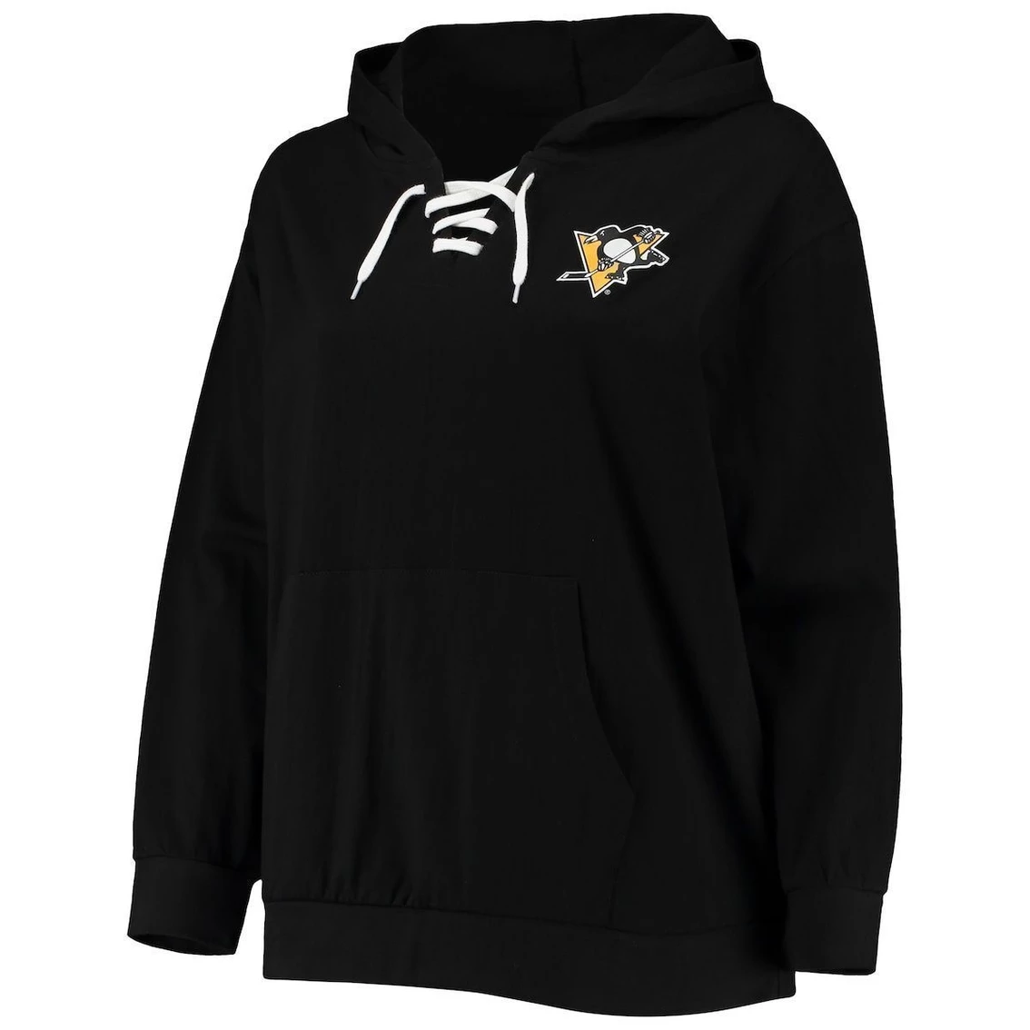 Best Pirce π Profile π© Women's Black Pittsburgh Penguins Plus Size Lace-Up Pullover Hoodie π