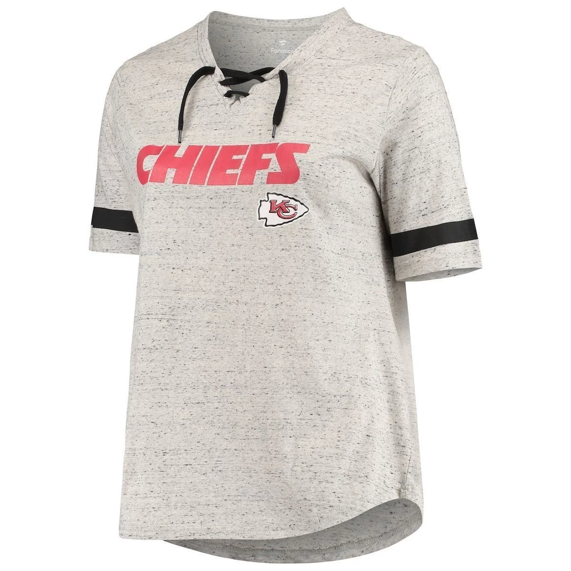 Top 10 π Profile π© Women's Heathered Gray Kansas City Chiefs Plus Size Lace-Up V-Neck T-Shirt π