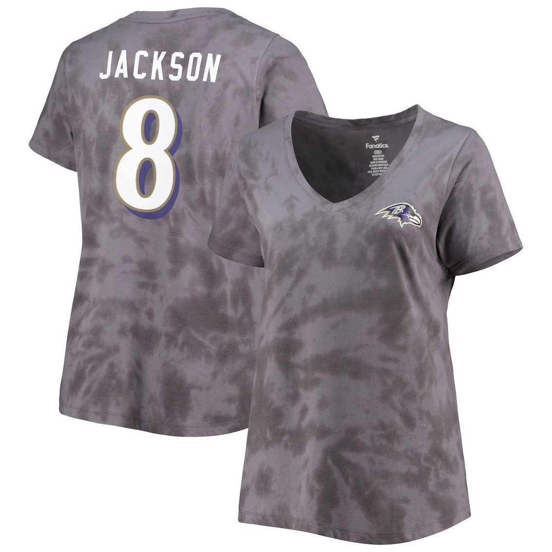 Promo π Profile π© Women's Lamar Jackson Charcoal Baltimore Ravens Plus Size Name & Number Tie-Dye T-Shirt π€©
