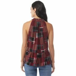 Tommy Hilfiger designed this patchwork print halter top with a keyhole and flattering ruffle hem. This top is perfect for layering with your favorite cold weather jacket. Style: J2IAH200612.