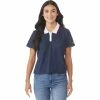 This best-selling short-sleeve polo shirt from Tommy Hilfiger is accented with a colorblocked collar and center stripe. It also has an exaggerated plaid logo at the chest. The women’s polo shirt is machine washable for easy care. Style: J2IH6827.
