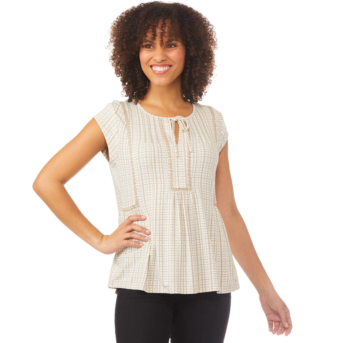 A unique trim and a sleeveless detail with pretty dots punctuate this easy-to-style top from Tommy Hilfiger.