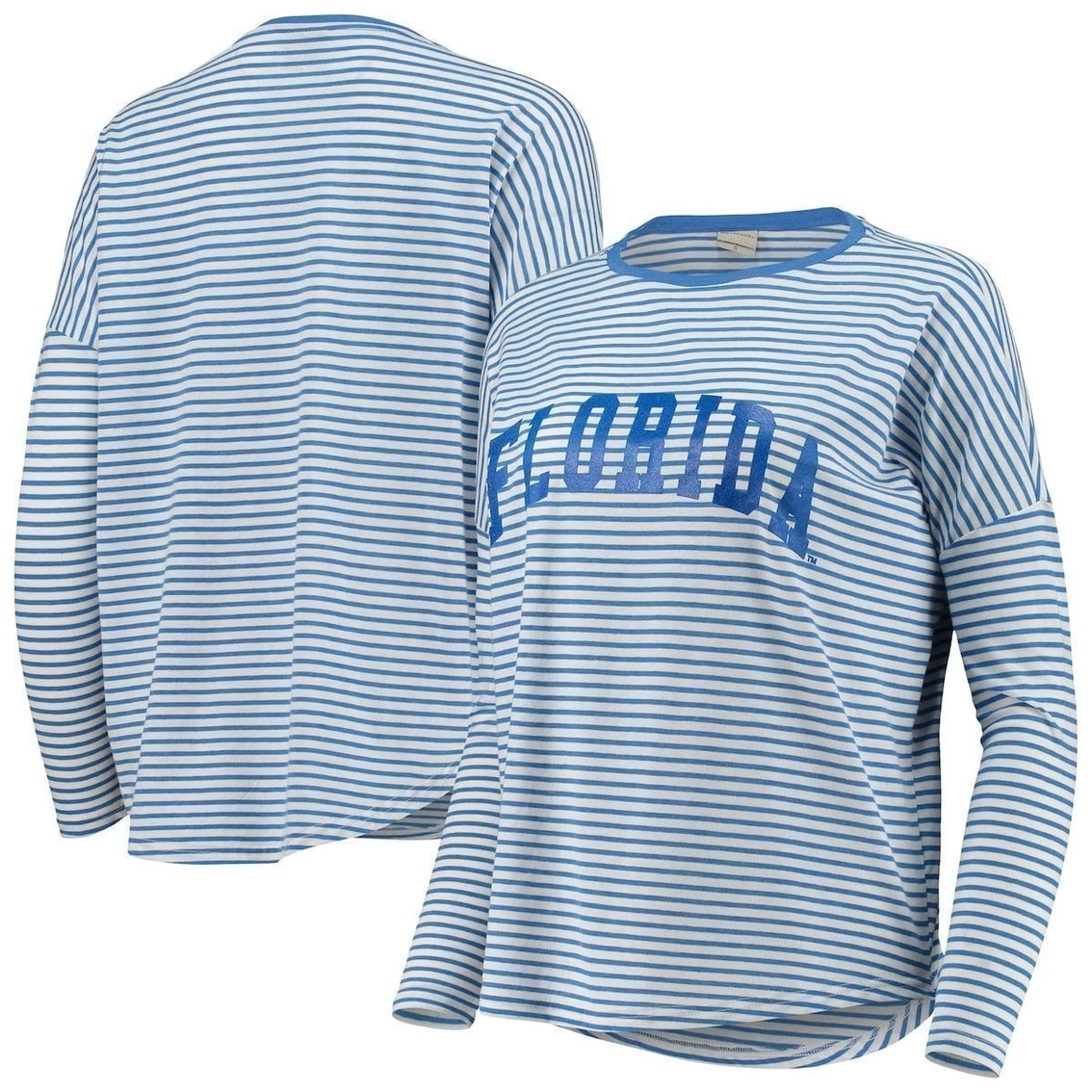 SKU: DSCO1141956368 Categories: T-Shirts, Tops, Women's Clothing Tags: Clothing & Accessories, T-Shirts, University Girl, Women's Royal/White Florida Gators Melange Striped Boxy Long Sleeve T-Shirt