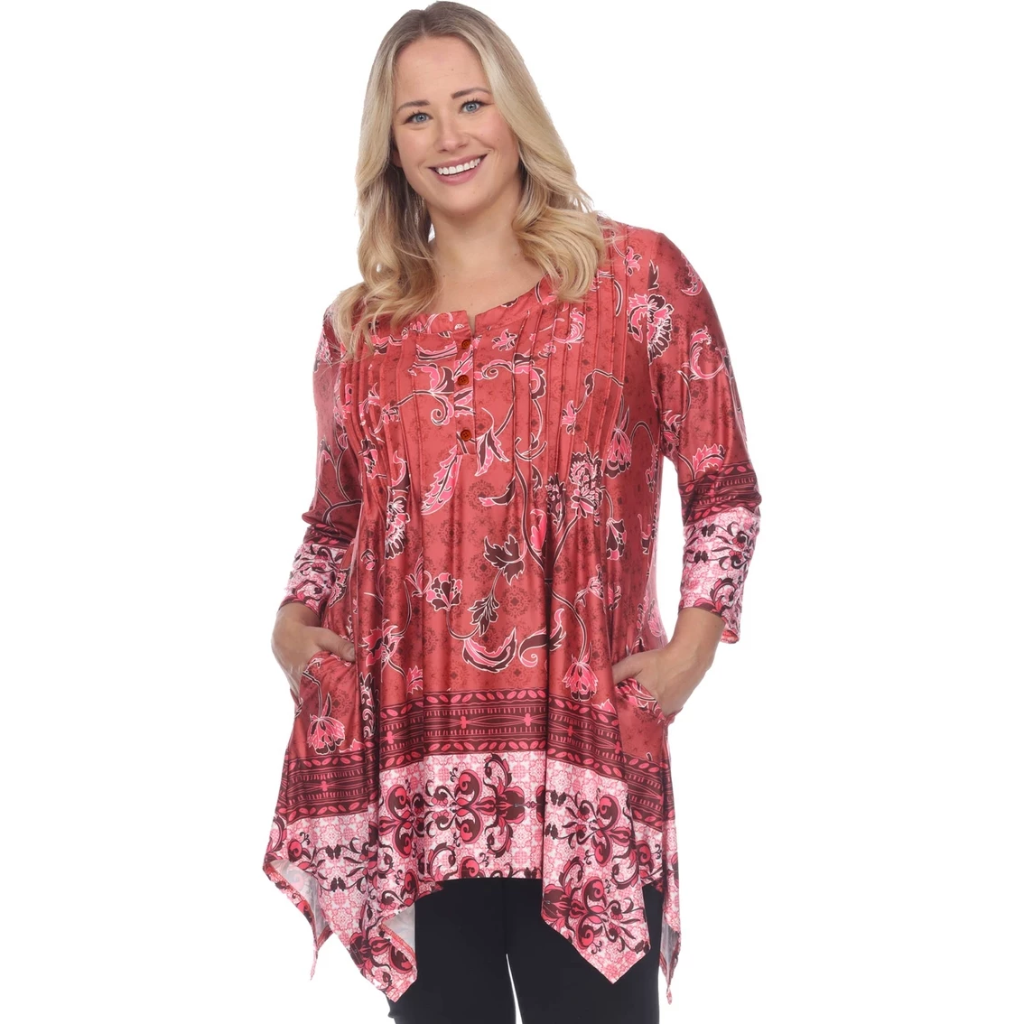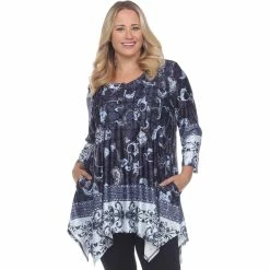 This flattering Paisley Tunic Top from White Mark drapes stunningly on your body. Made with a beautiful paisley print, 3/4 sleeves, and scoop neckline for a comfortable fit and look stylish. Pleats on the bodice give this tunic a more elegant look. This handkerchief hem line tunic features two side pockets, as well as functional front pockets. White Mark Women’s Plus Size Victorian Print Tunic Top with Pockets styles perfectly with leggings, jeans or shorts. Style: PS1326.