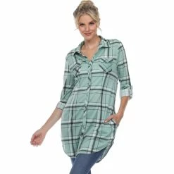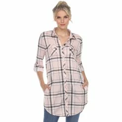 Designed in a flattering, longer length, this plaid tunic by White Mark is always the year-round classic style you want in your closet. You will love its relaxed fit and tunic length that pairs great with a variety of bottoms. Or you can even wear it as tunic dress. It features a front button and side pockets. Style: 17559.