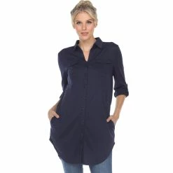 Cheap π₯ White Mark Stretchy Button Down Tunic π€©