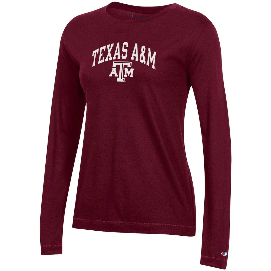 - A crisp game day has never impeded your ability to showcase your Texas A&M Aggies pride. On the contrary, those cooler temperatures offer another opportunity for you to show your unbounded team spirit. Choose this University Arch Logo T-shirt from Champion. You’ll find this Texas A&M Aggies long sleeve tee to be a top you’ll grab at the first sign of colder weather.