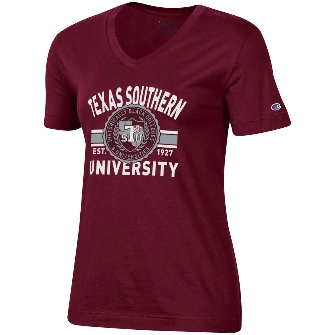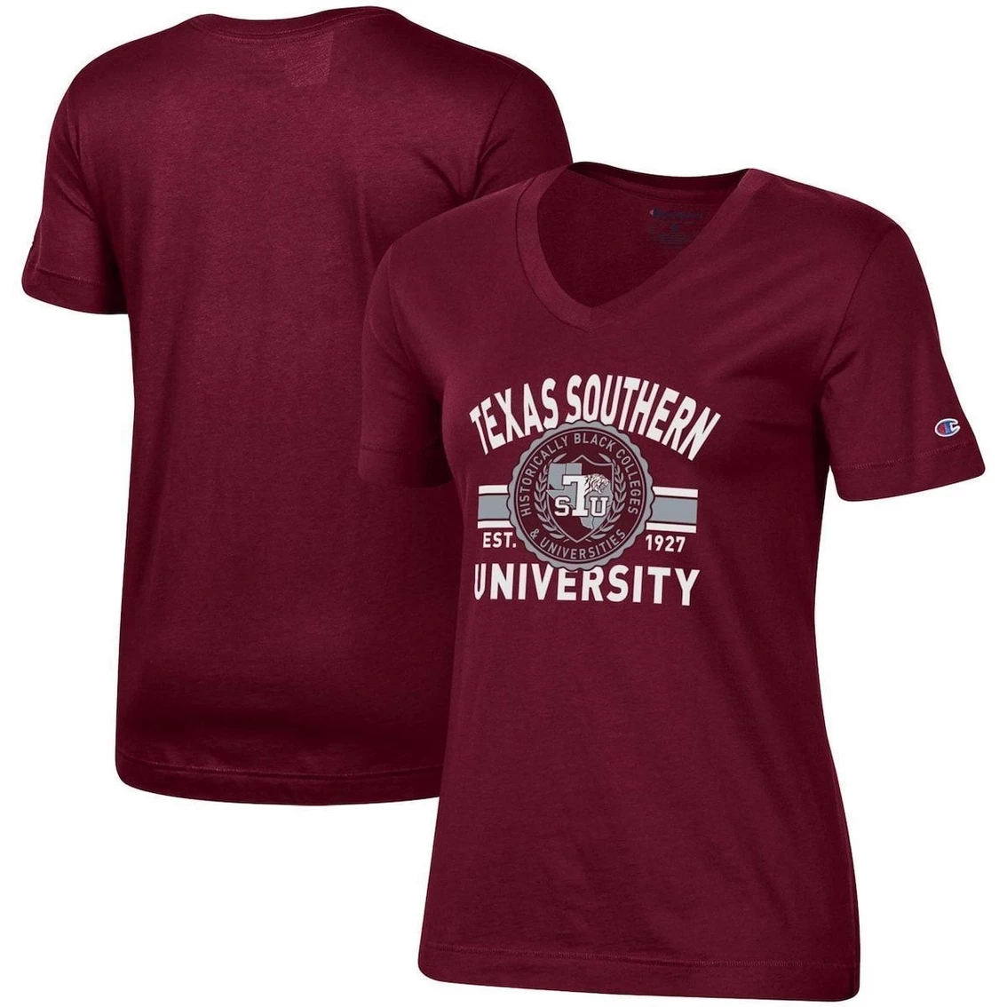 Buy π Women's Champion Maroon Texas Southern Tigers Primary Logo V-Neck T-Shirt π―