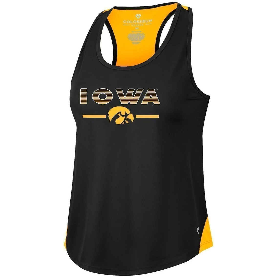 Hot Sale π― Women's Colosseum Black Iowa Hawkeyes Sachs 2-Hit Scoop Neck Racerback Tank Top π₯°