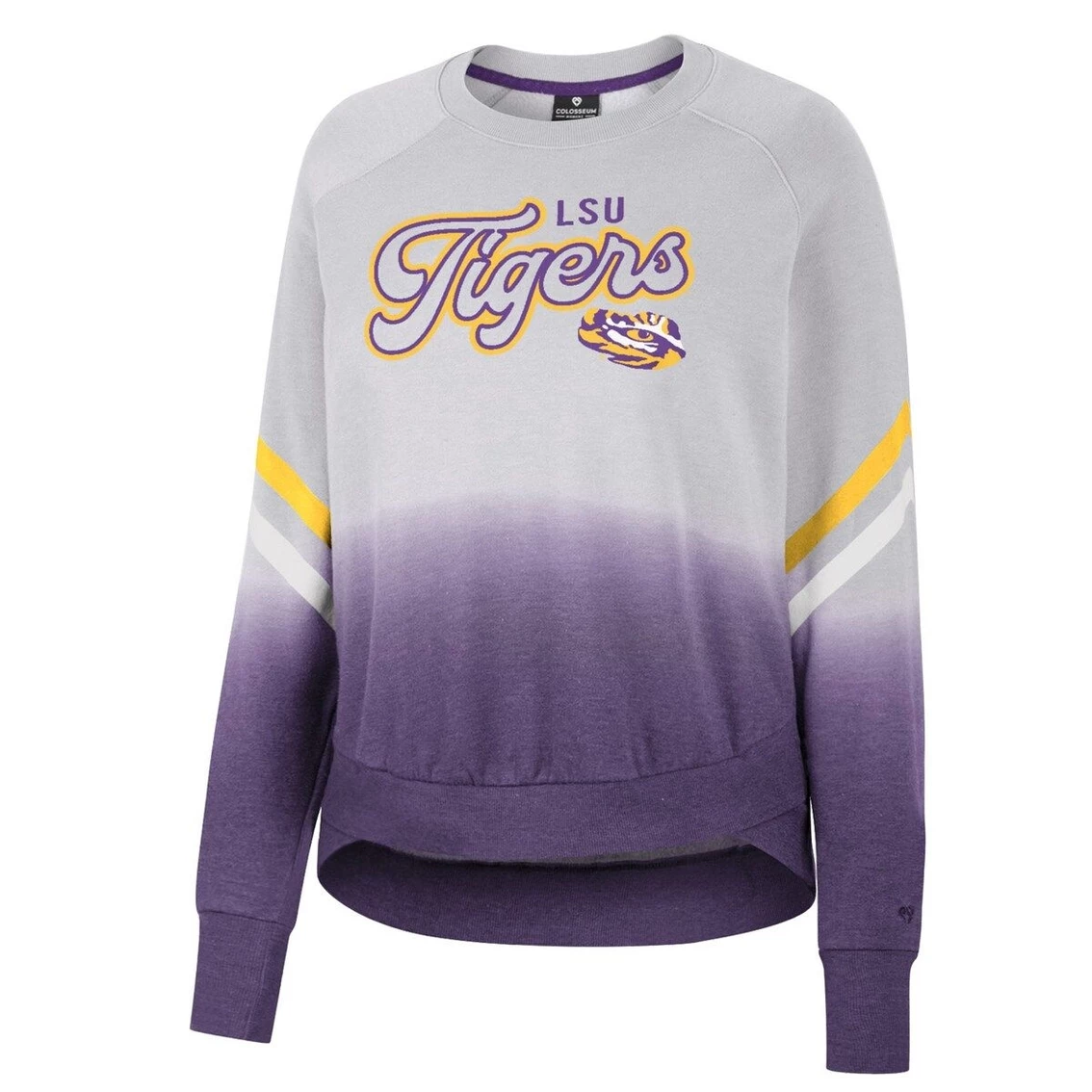 - Upgrade your rotation of official LSU Tigers apparel with this Cue Cards pullover sweatshirt from Colosseum. It features a vibrant dip-dye design and contrast-color stripes on the sleeves, making it a unique option for game day. The raglan sleeves offer increased movement and comfortability for your arms and shoulders, which will come in handy when you are cheering the LSU Tigers on to victory.