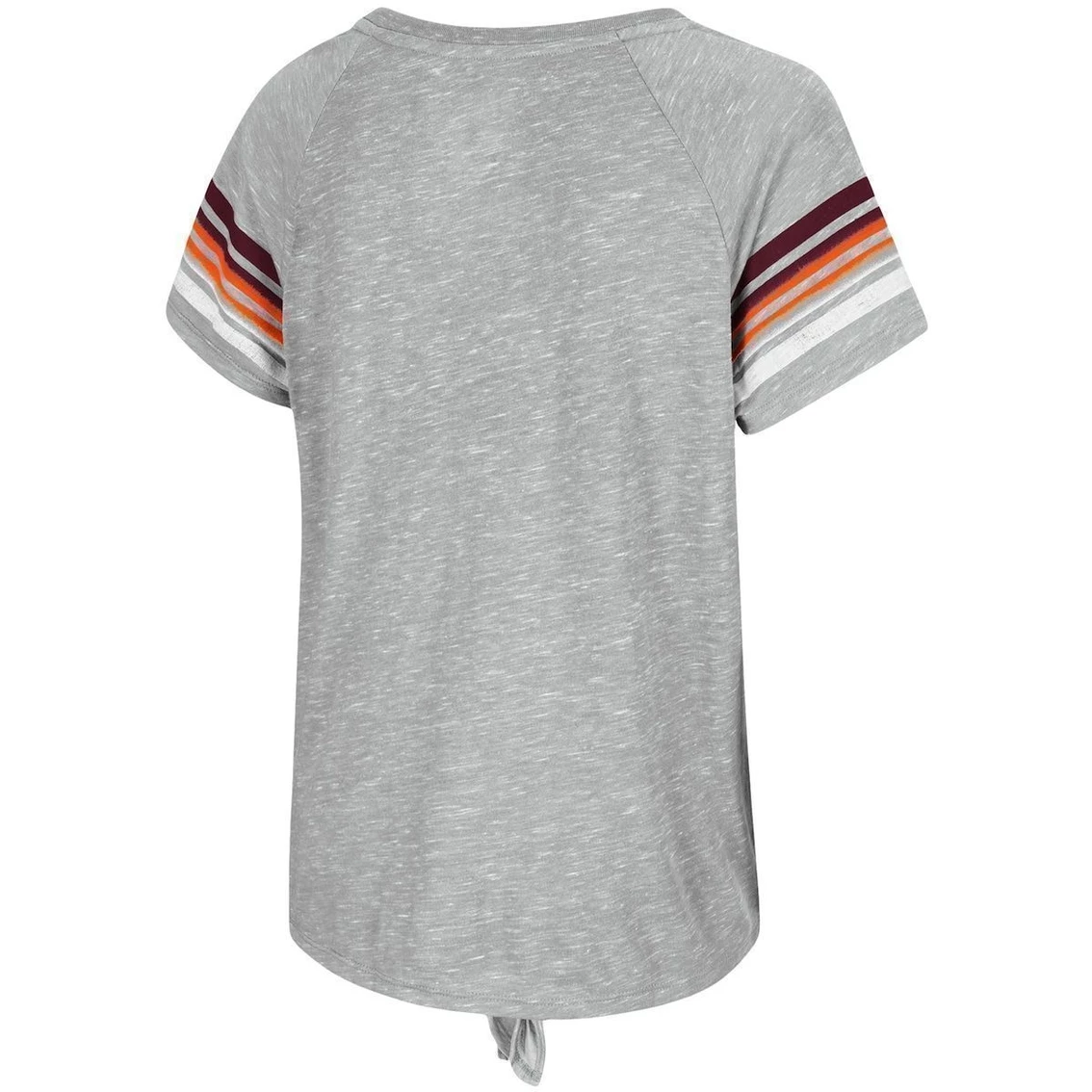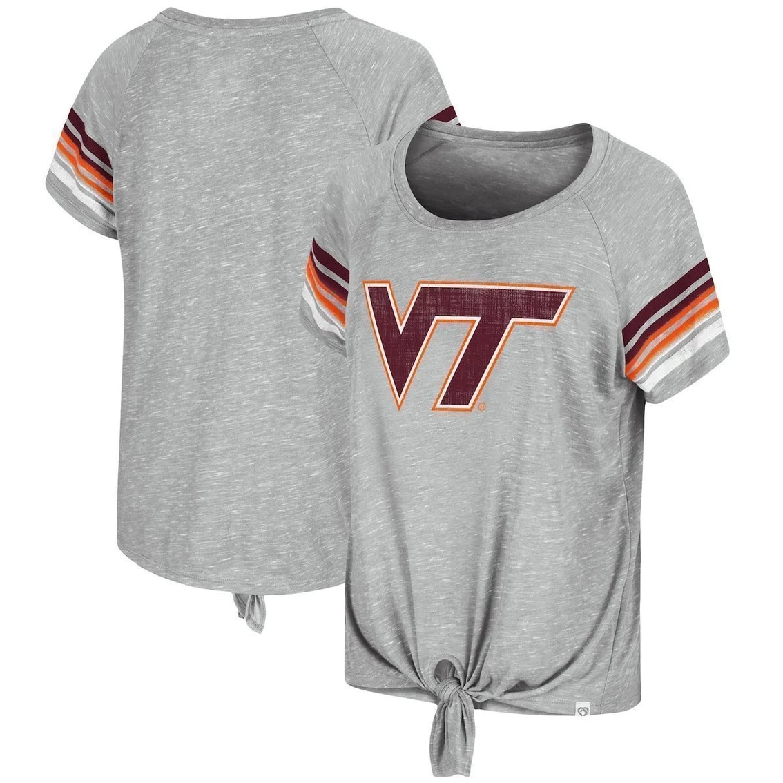 Discount π€© Women's Colosseum Heathered Gray Virginia Tech Hokies Boo You Knotted Raglan T-Shirt π