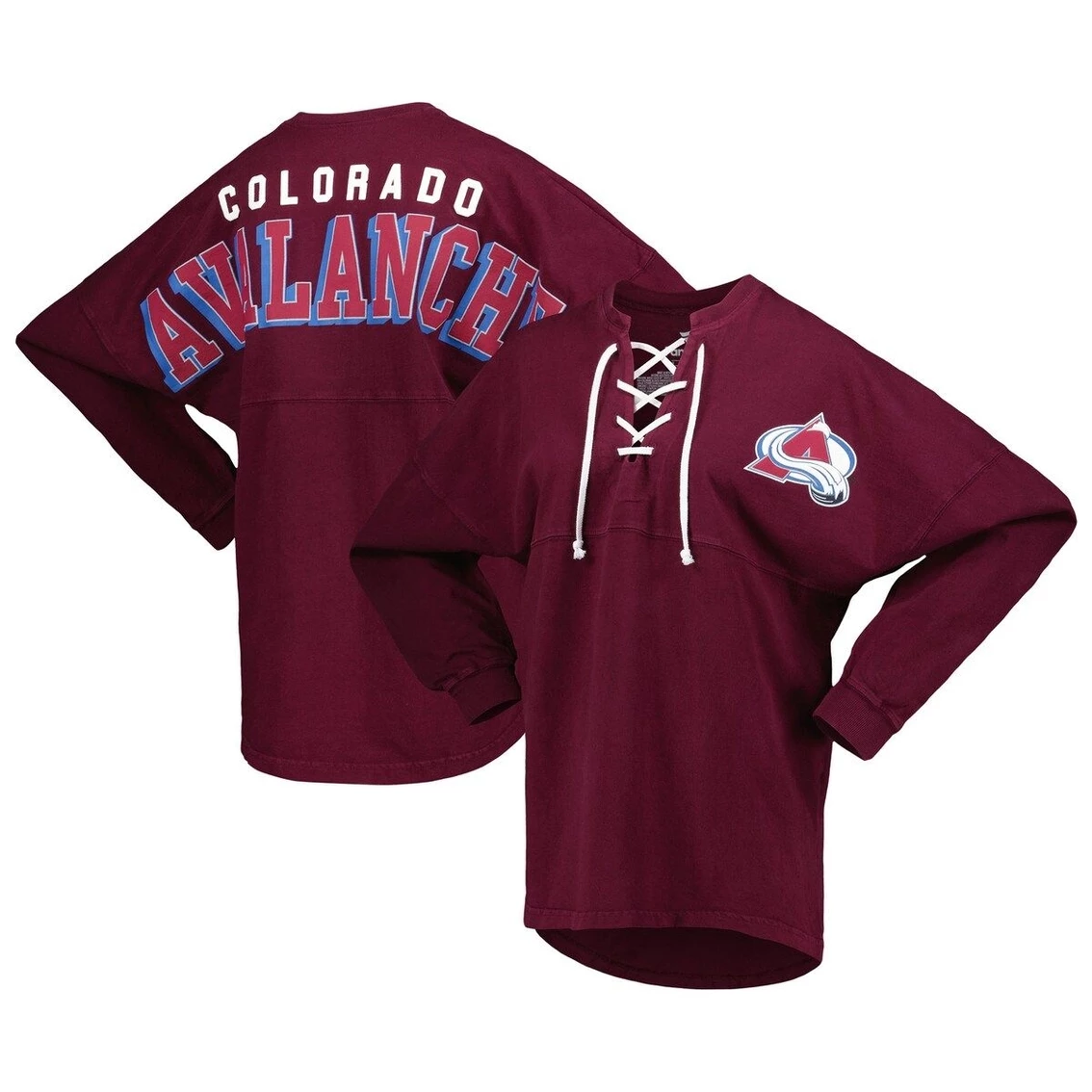 - Boost your collection of official Colorado Avalanche gear with this Spirit jersey T-shirt from Fanatics Branded. It features a lace-up V-neckline and dropped shoulders, ensuring that you’ll be the most stylish fan on game day. The low-puff graphics on this cotton tee make it clear that your loyalty to the Colorado Avalanche is second to none.
