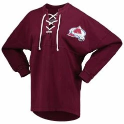SKU: DSCO1161251071 Categories: T-Shirts, Tops, Women's Clothing Tags: Clothing & Accessories, Fanatics Branded, T-Shirts, Women's Fanatics Branded Burgundy Colorado Avalanche Spirit Lace-Up V-Neck Long Sleeve Jersey T-Shirt