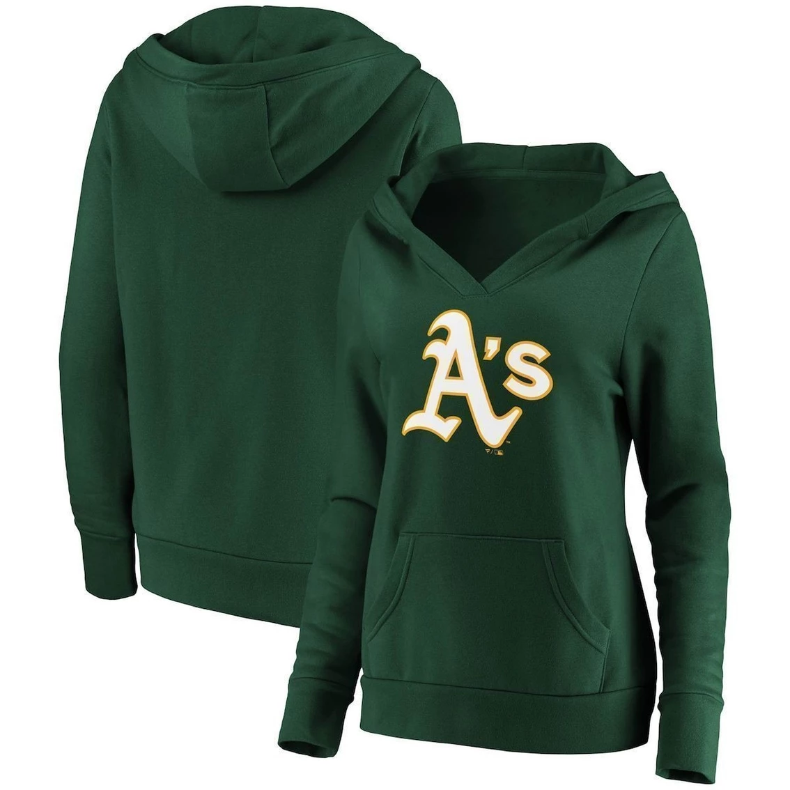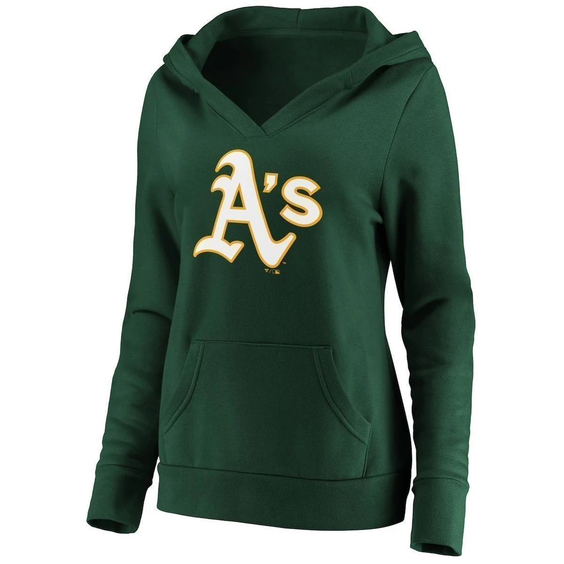 - Your game day style can’t be beat, but what do you do when it gets cooler outside? You grab this Oakland Athletics Official Logo crossover V-neck pullover hoodie from Fanatics Branded! Featuring bold Oakland Athletics graphics on the chest, you can rest easy knowing you’ll be illustrating your fierce loyalty to the team, no matter the temperature.